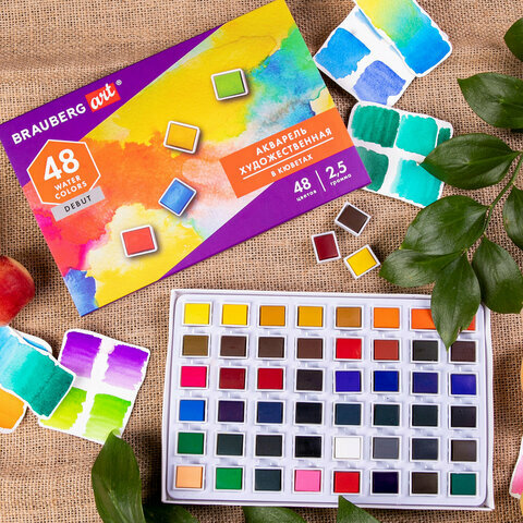 СохранитьКомплект 2 шт, Акварель художественная в кюветах набор 48 цветов по 2.5 г, BRAUBERG ART DEBUT, 191780 интересное: