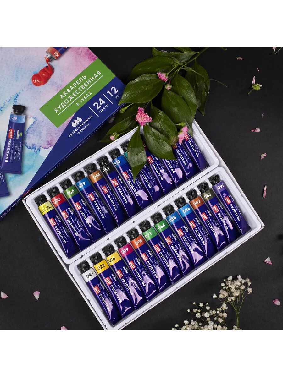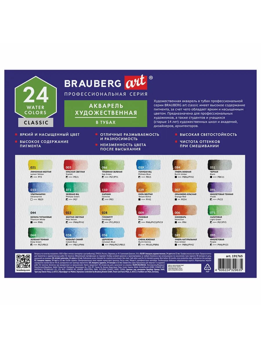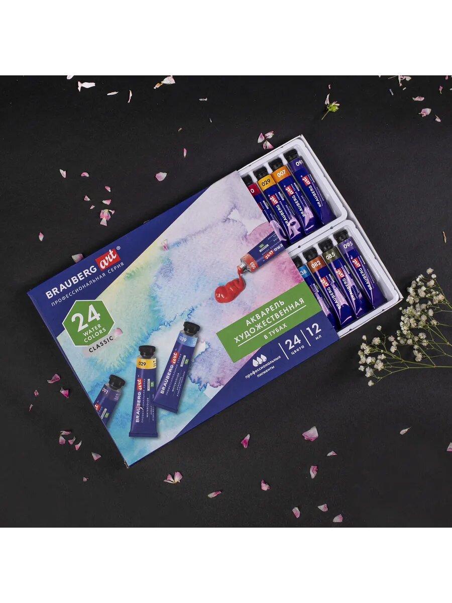 Акварель художественная / краски акварельные для рисования в тубах Набор 24 цвета по 12 мл, Brauberg Art Classic, 191765