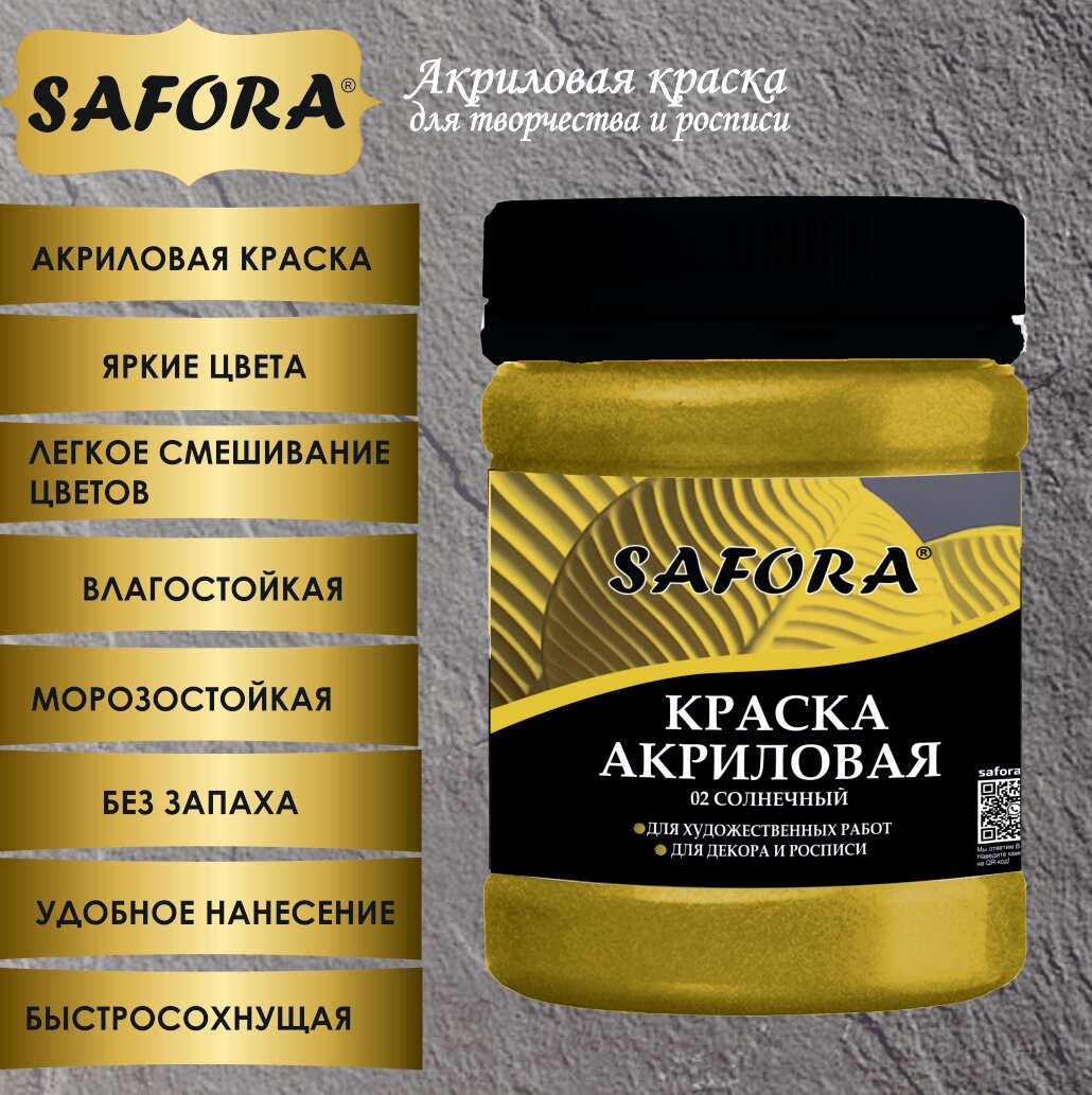СохранитьКраска акриловая художественная, краска для рисования SAFORA, Солнечный 70г, матовое покрытие интересное: