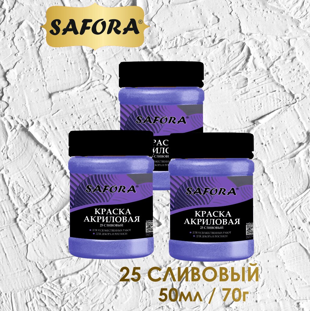 Краска акриловая художественная, краска для рисования SAFORA, лиловый 70г матовое покрытие