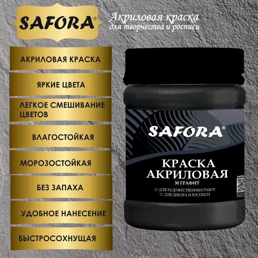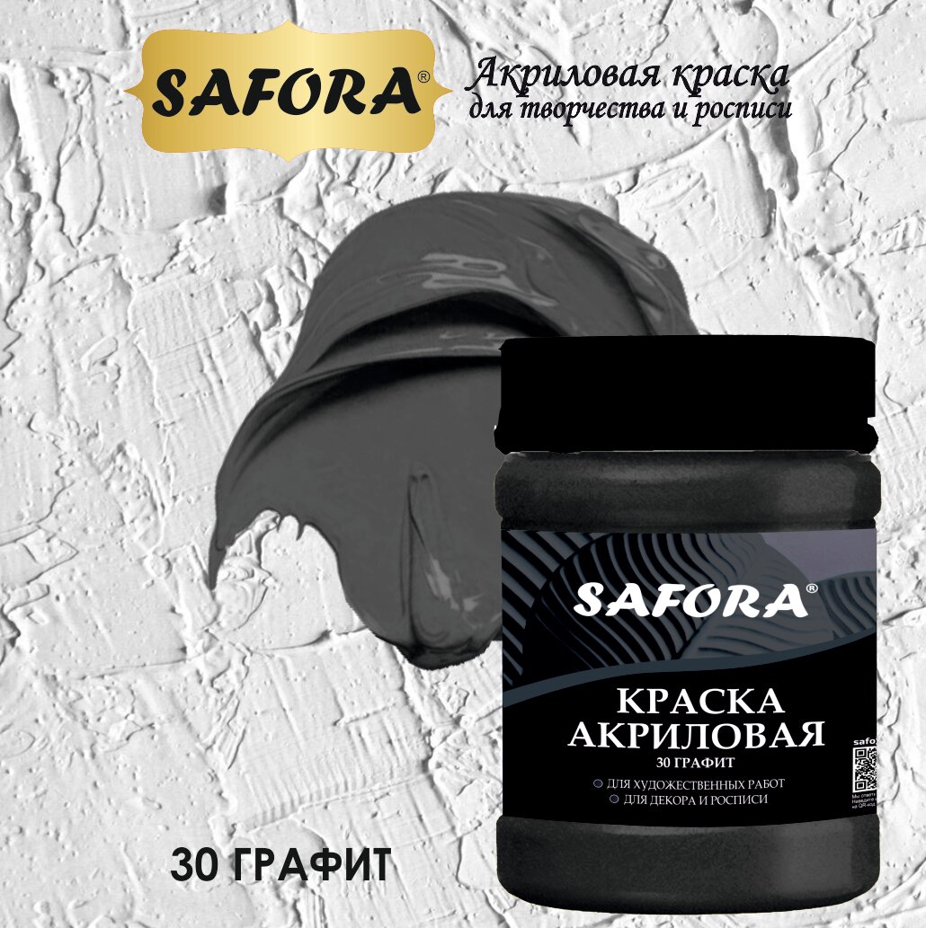 СохранитьКраска акриловая художественная, краска для рисования SAFORA, графит 70г, матовое покрытие интересное: