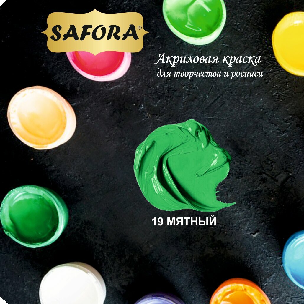 Купить Краска акриловая художественная SAFORA, Мятный 70г, матовое покрытие