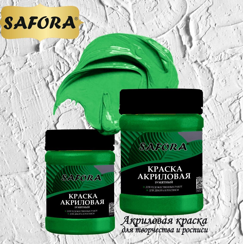 СохранитьКраска акриловая художественная SAFORA, Мятный 70г, матовое покрытие интересное: