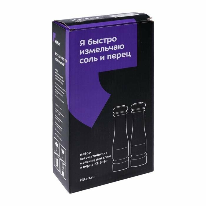 Мельница Kitfort КТ-2030 для соли и перца, электрическая, 2 шт.