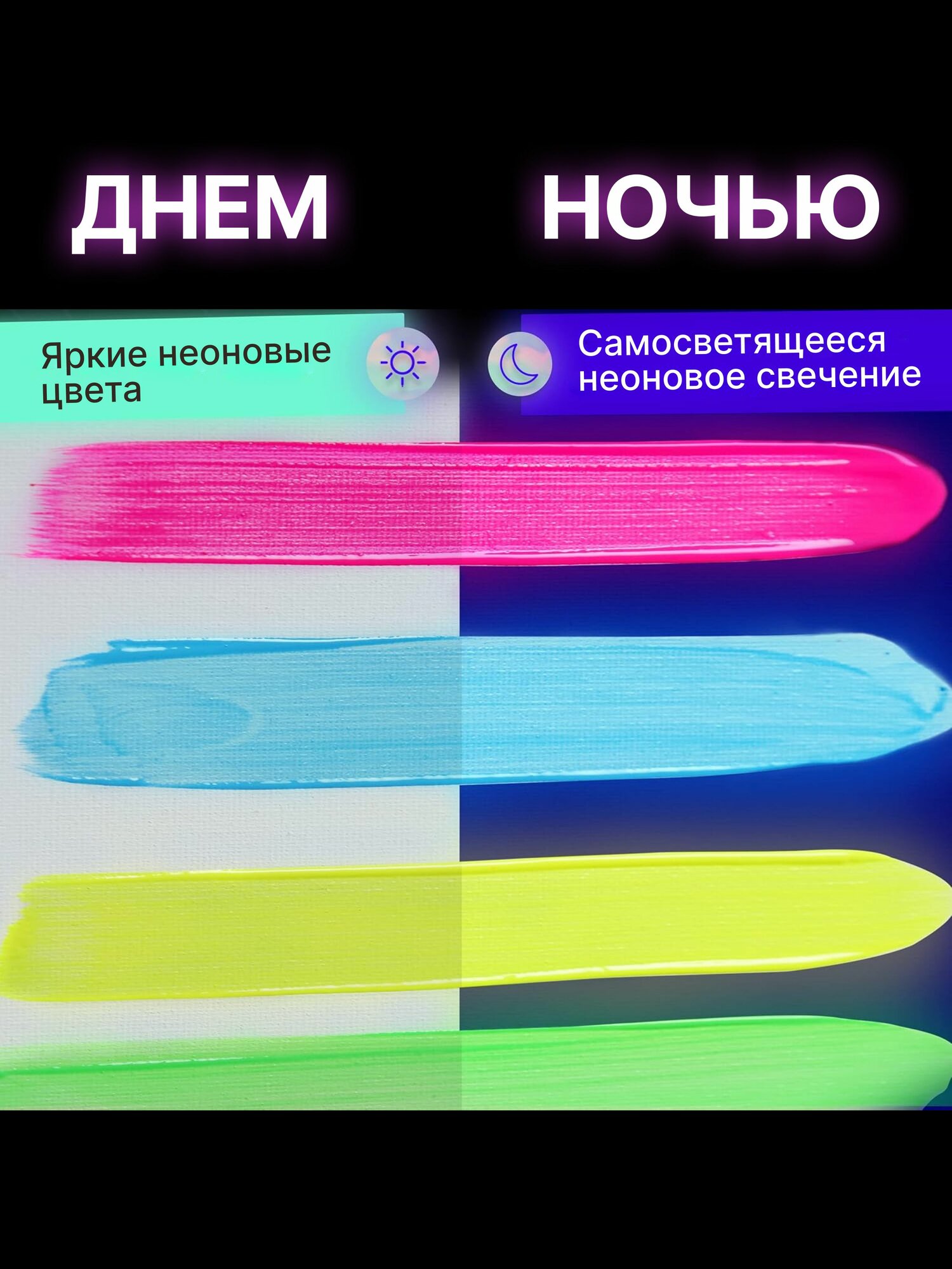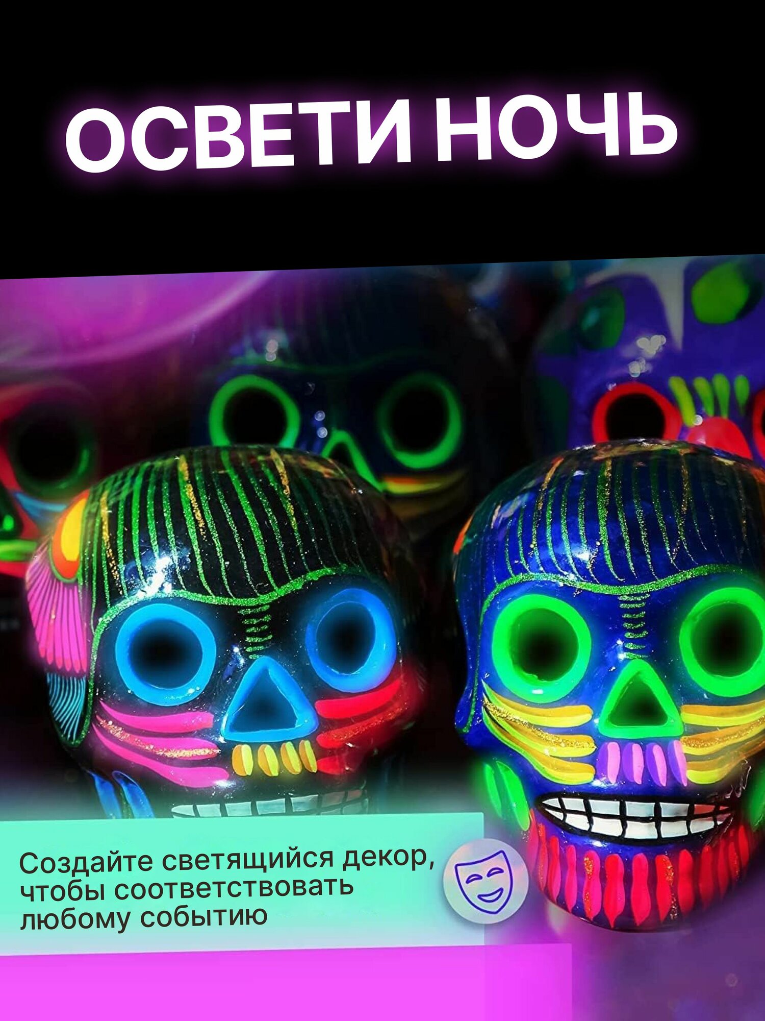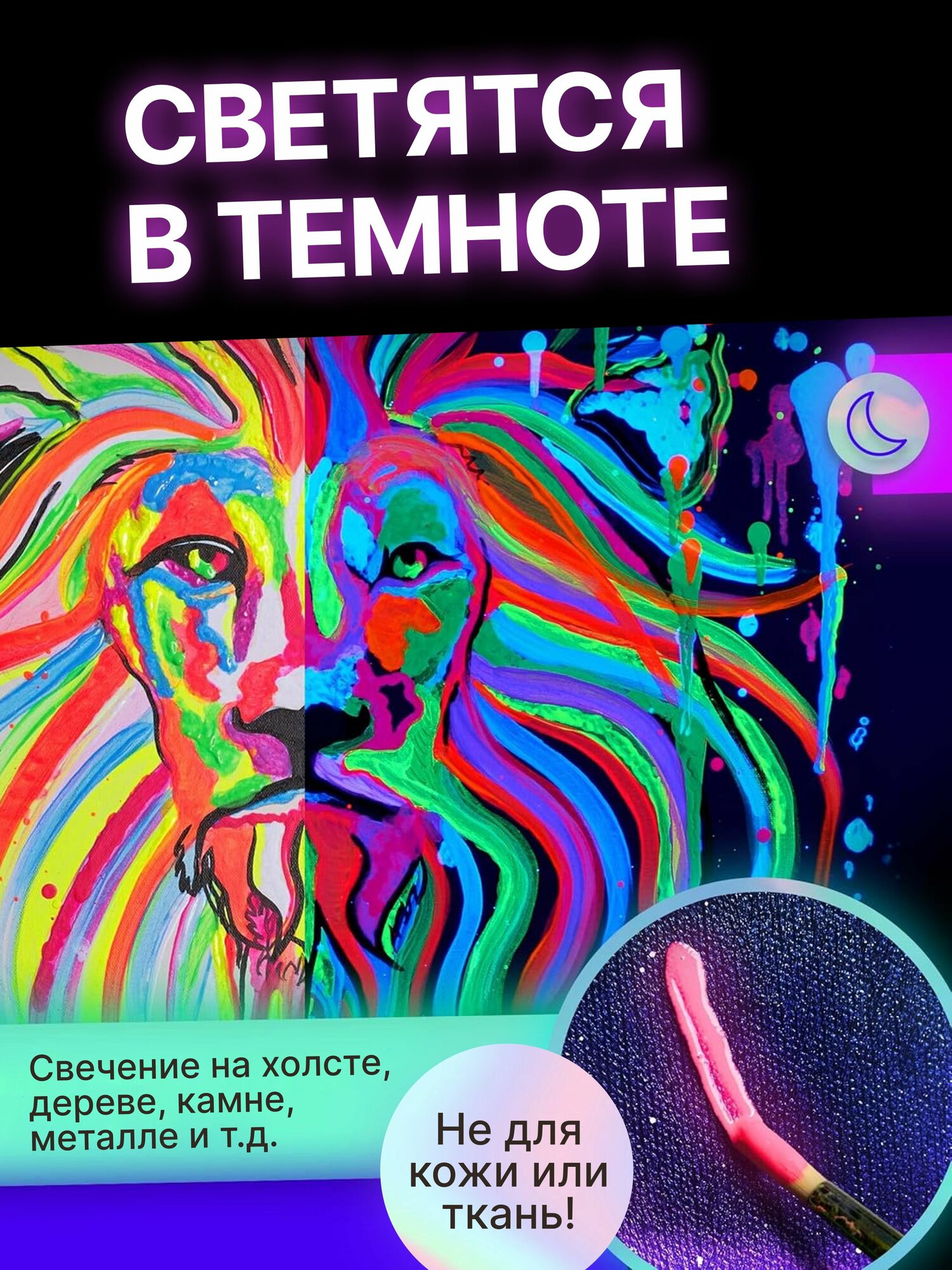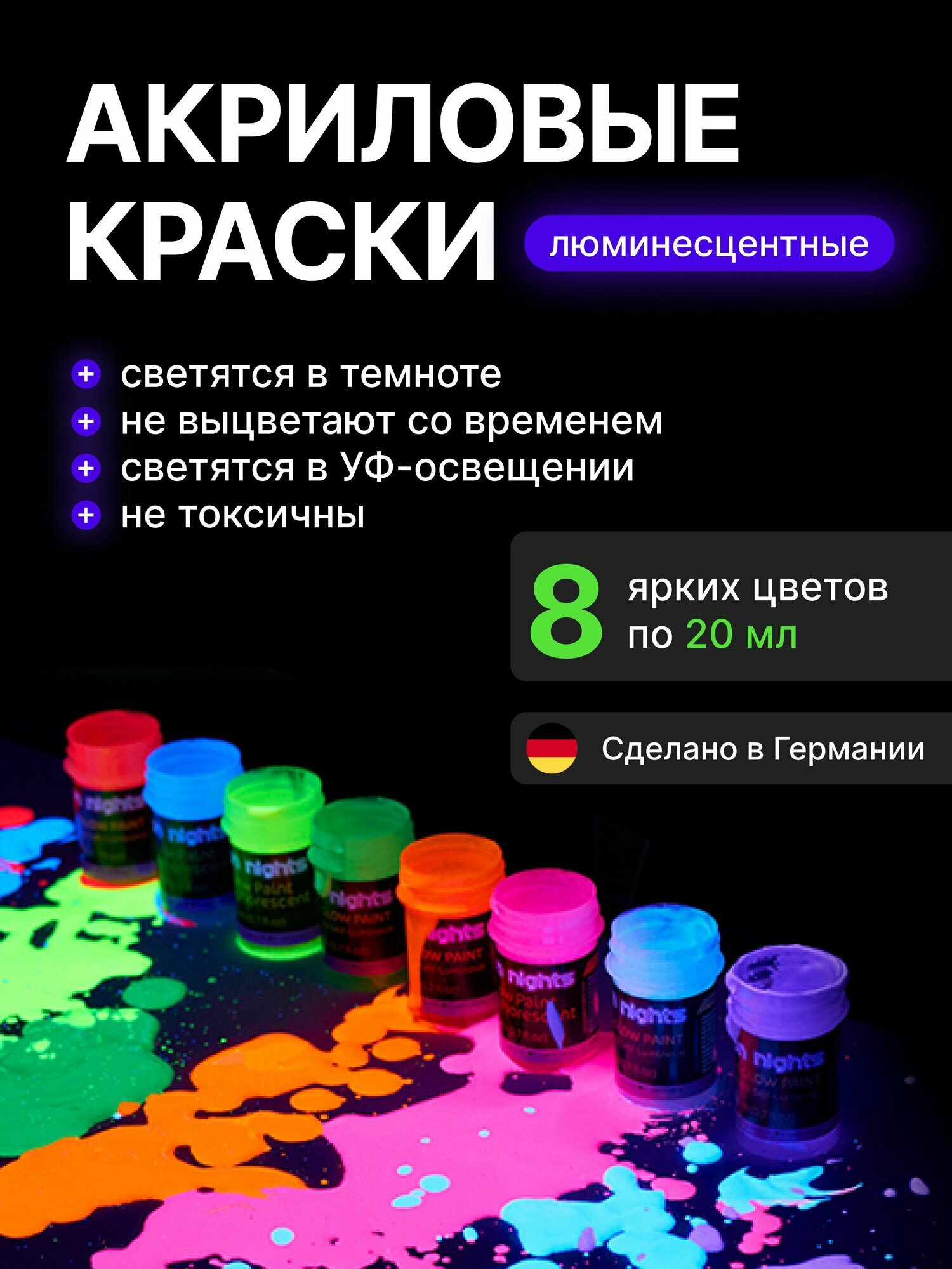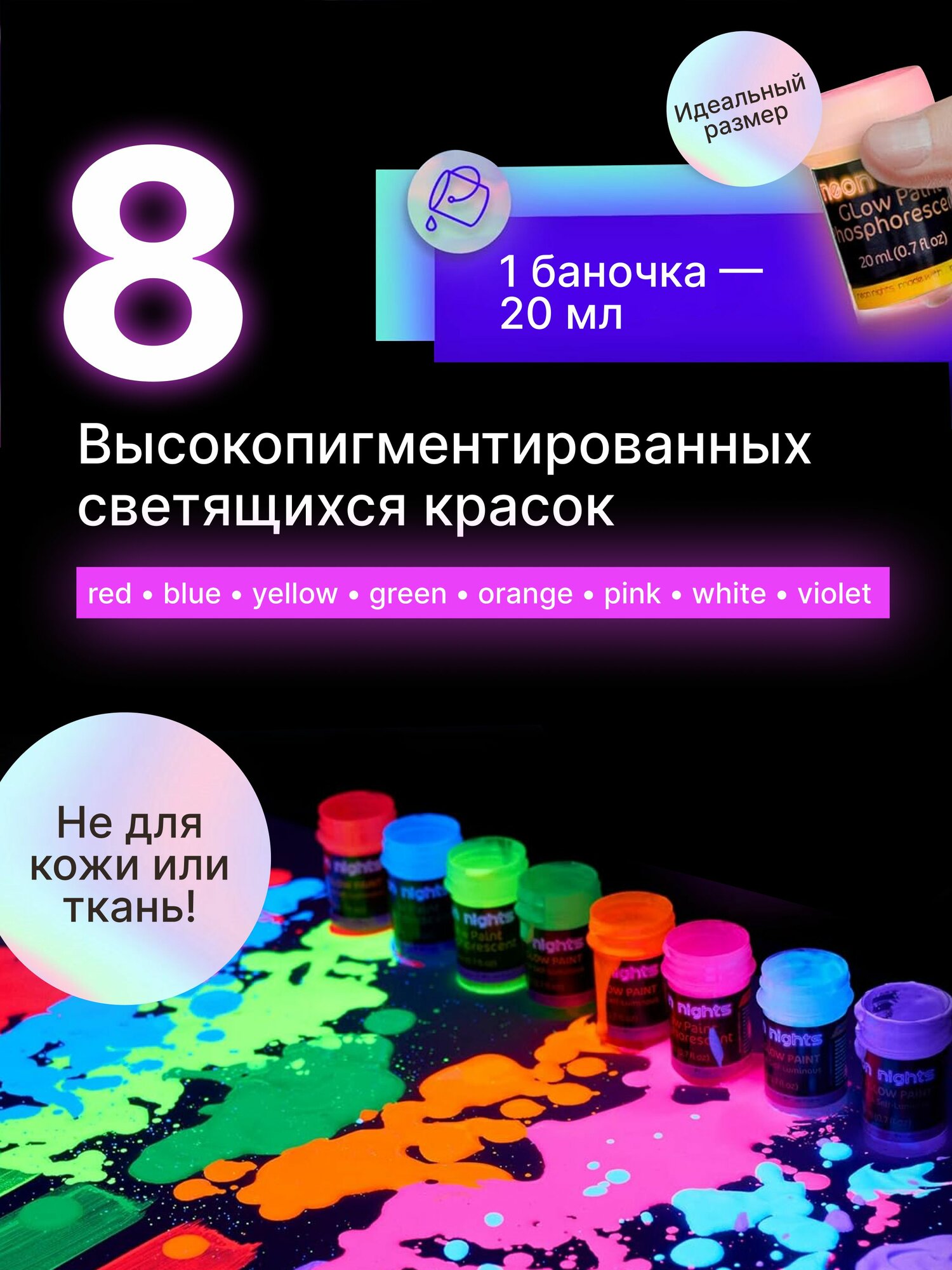 Люминесцентные акриловые краски, набор 8 шт, неоновые светящиеся в темноте интересное: