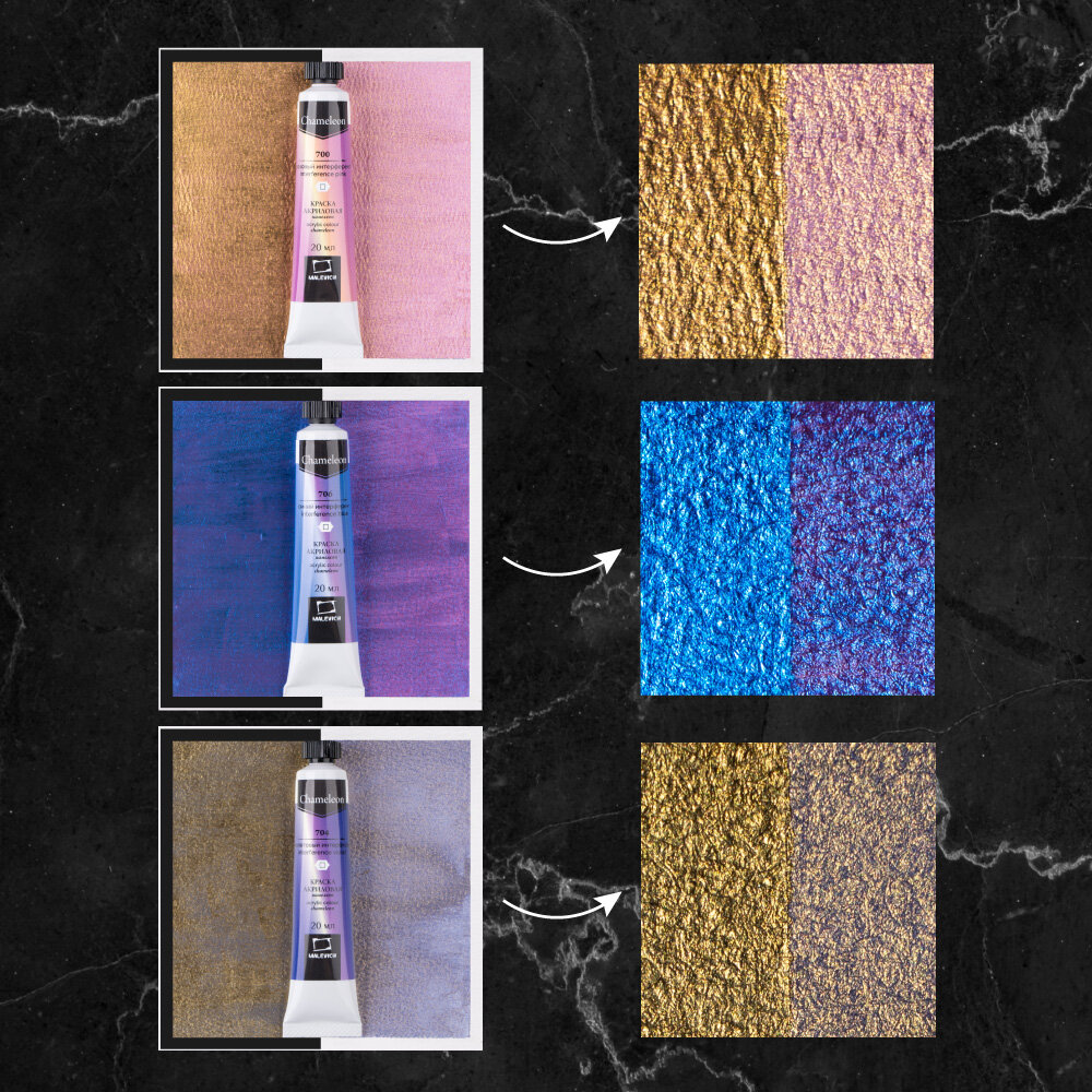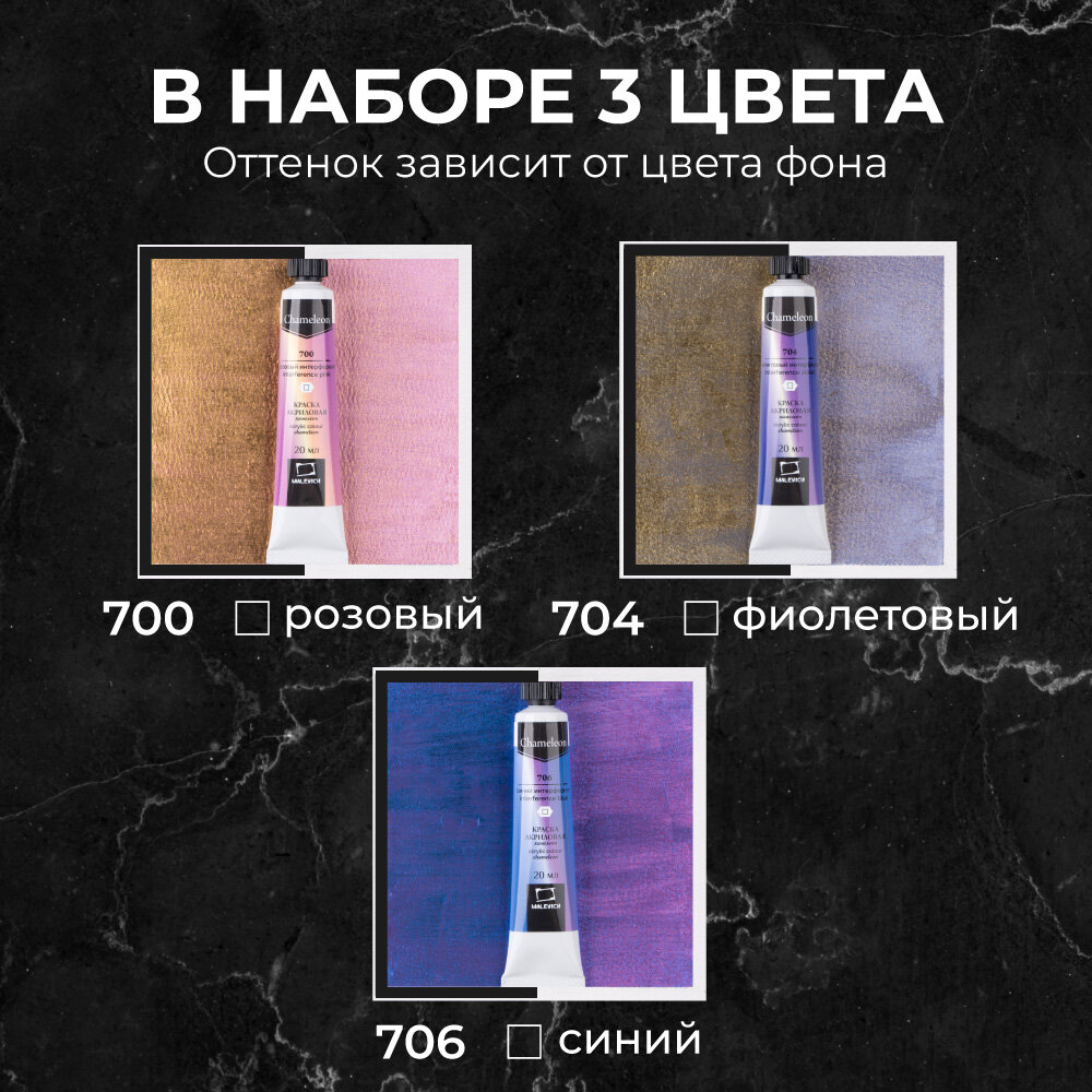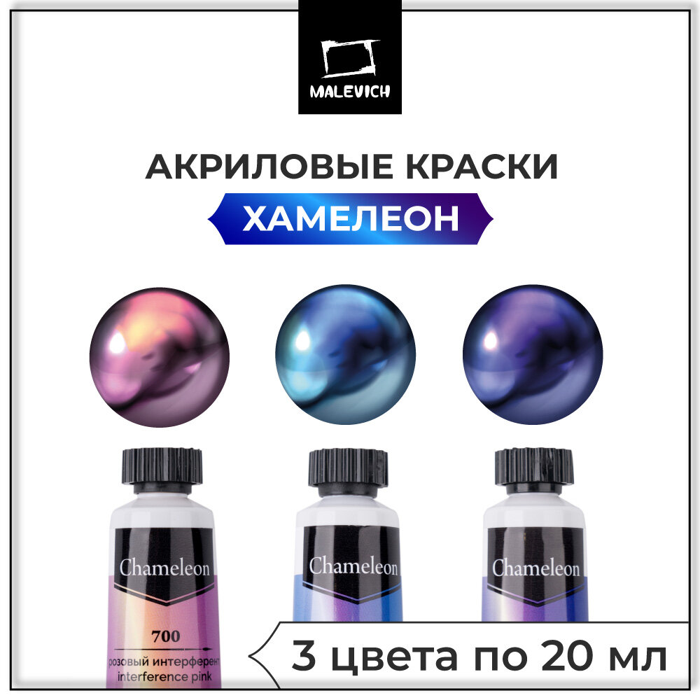 Набор акриловых красок хамелеонов Малевичъ, акрил 3 цв по 20 мл интересное: