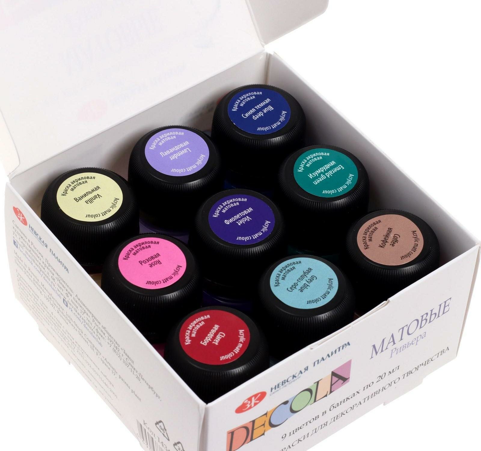 Краски акриловые матовые Невская палитра DECOLA "Ривьера", 9 цветов по 20 мл 143411883 интересное:
