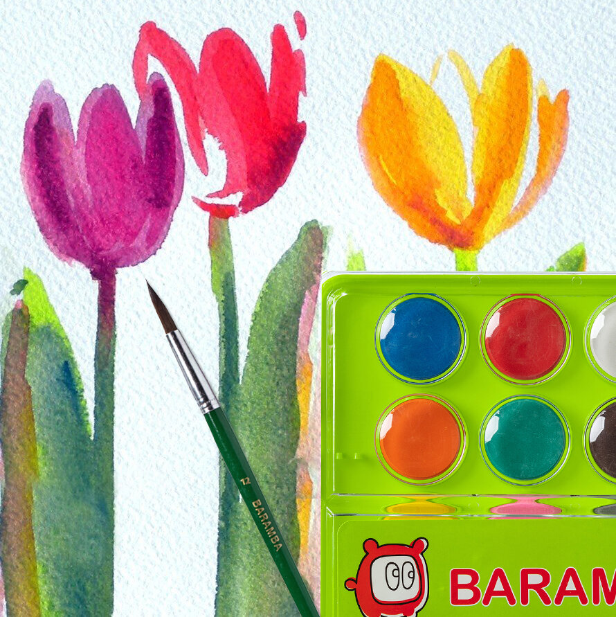 Купить Акварель/ акварельные краски Baramba/ краски акварельные 18 цветов в пакете с европодвесом/творчество для детей