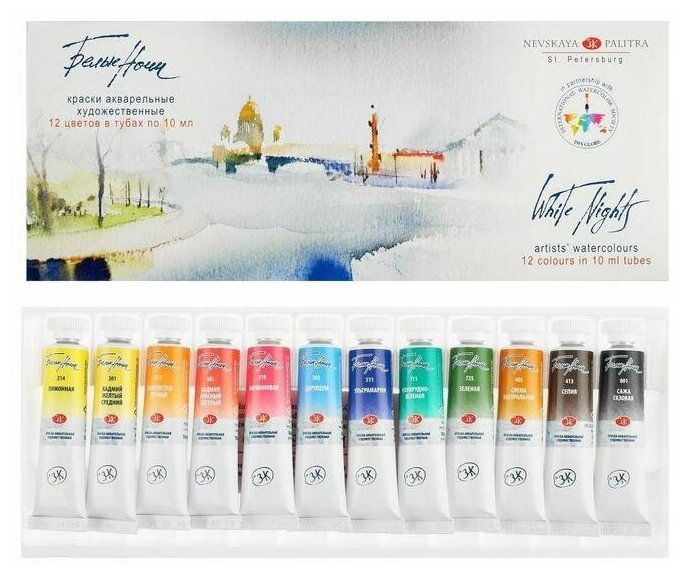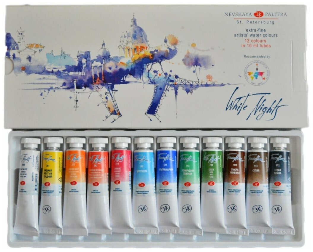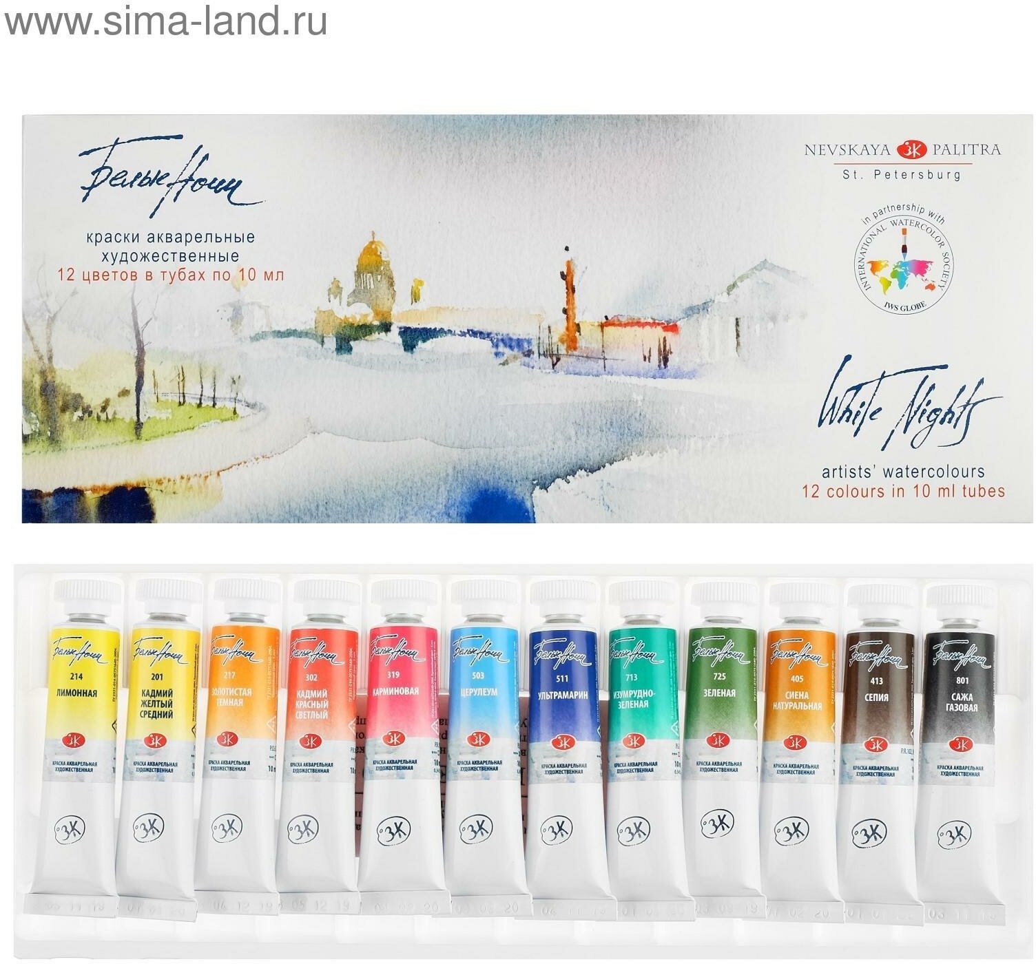 Акварель художественная в тубе, 12 цветов х 10 мл, ЗХК Белые ночи , 19411227 интересное: