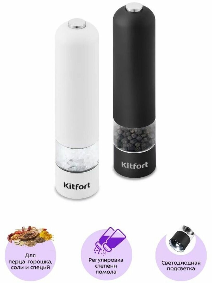 Перечница электрическая Kitfort KT-2027 черный/белый
