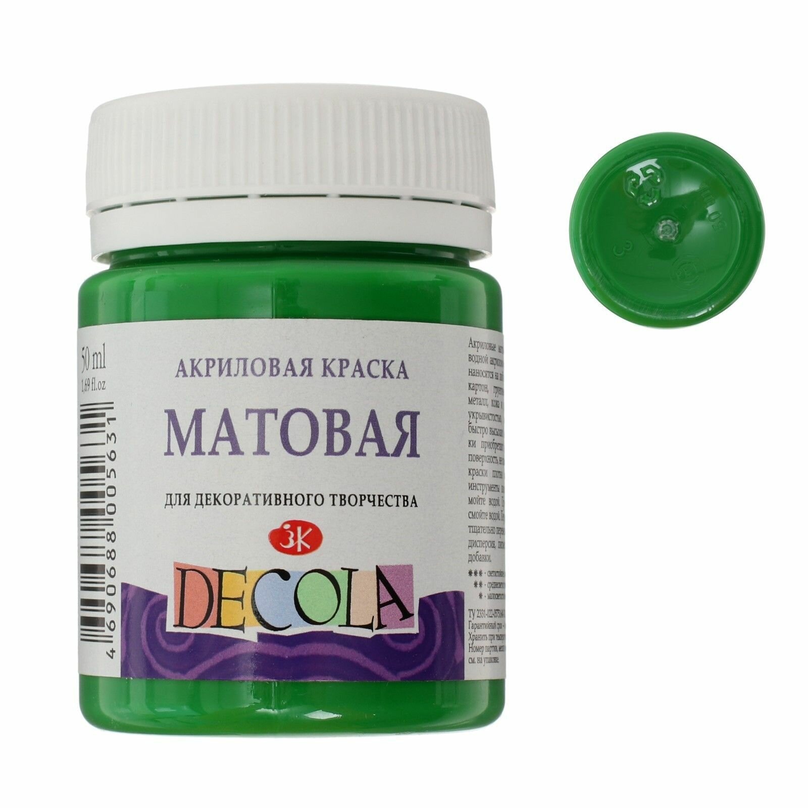 Краска акриловая матовая Невская палитра DECOLA, 50 мл, зелёная средняя 14328722