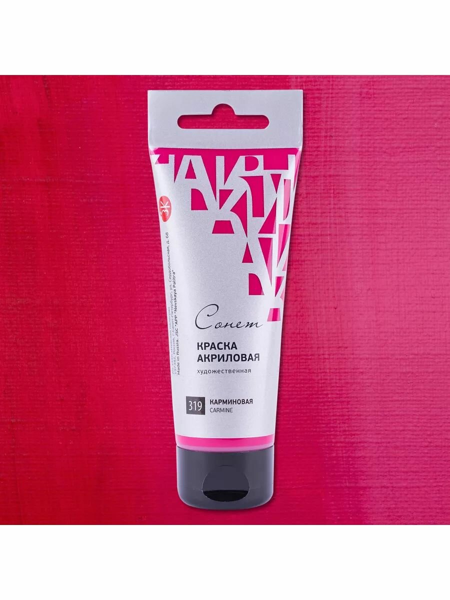 Купить Акриловая краска для рисования сонет туба 75 мл карминовая