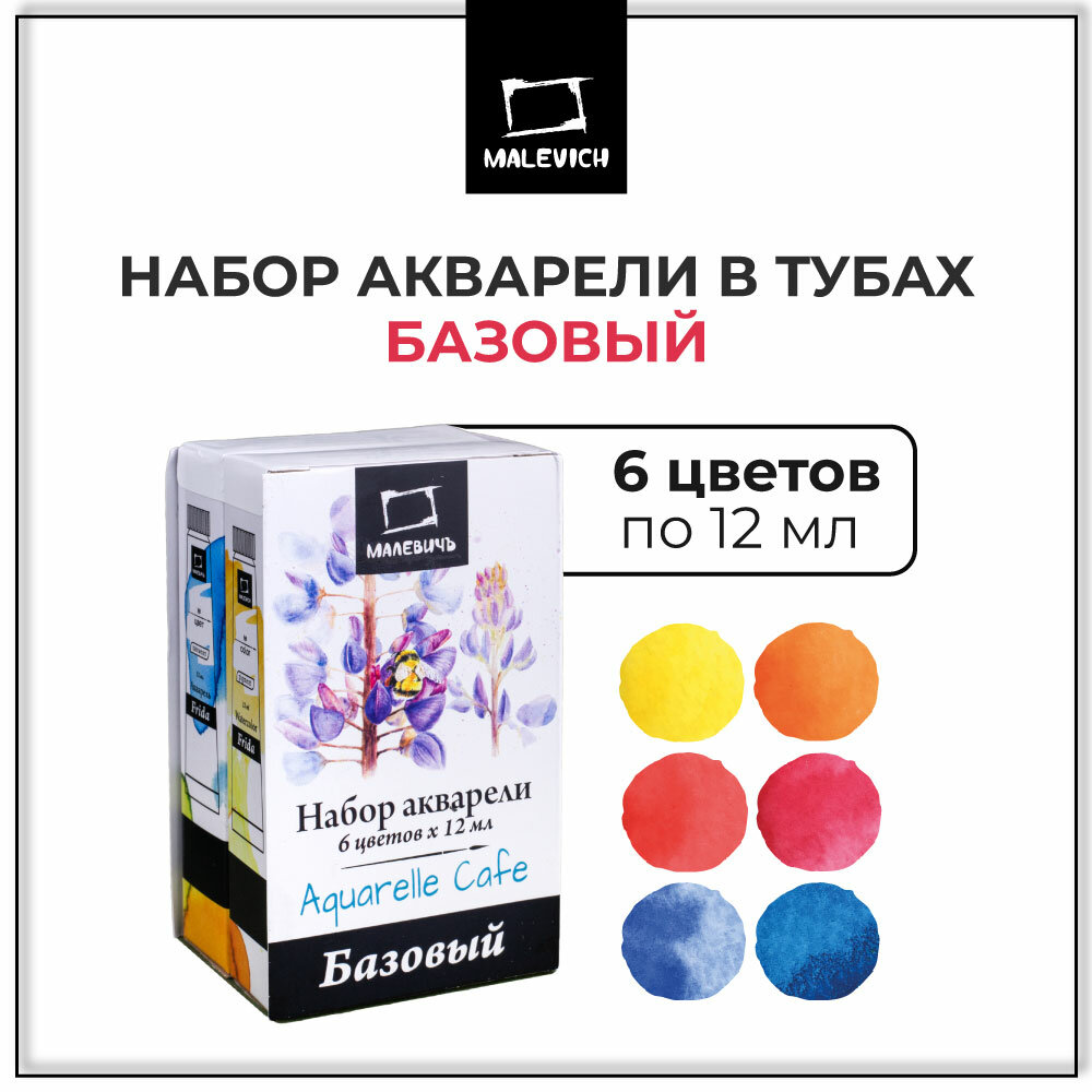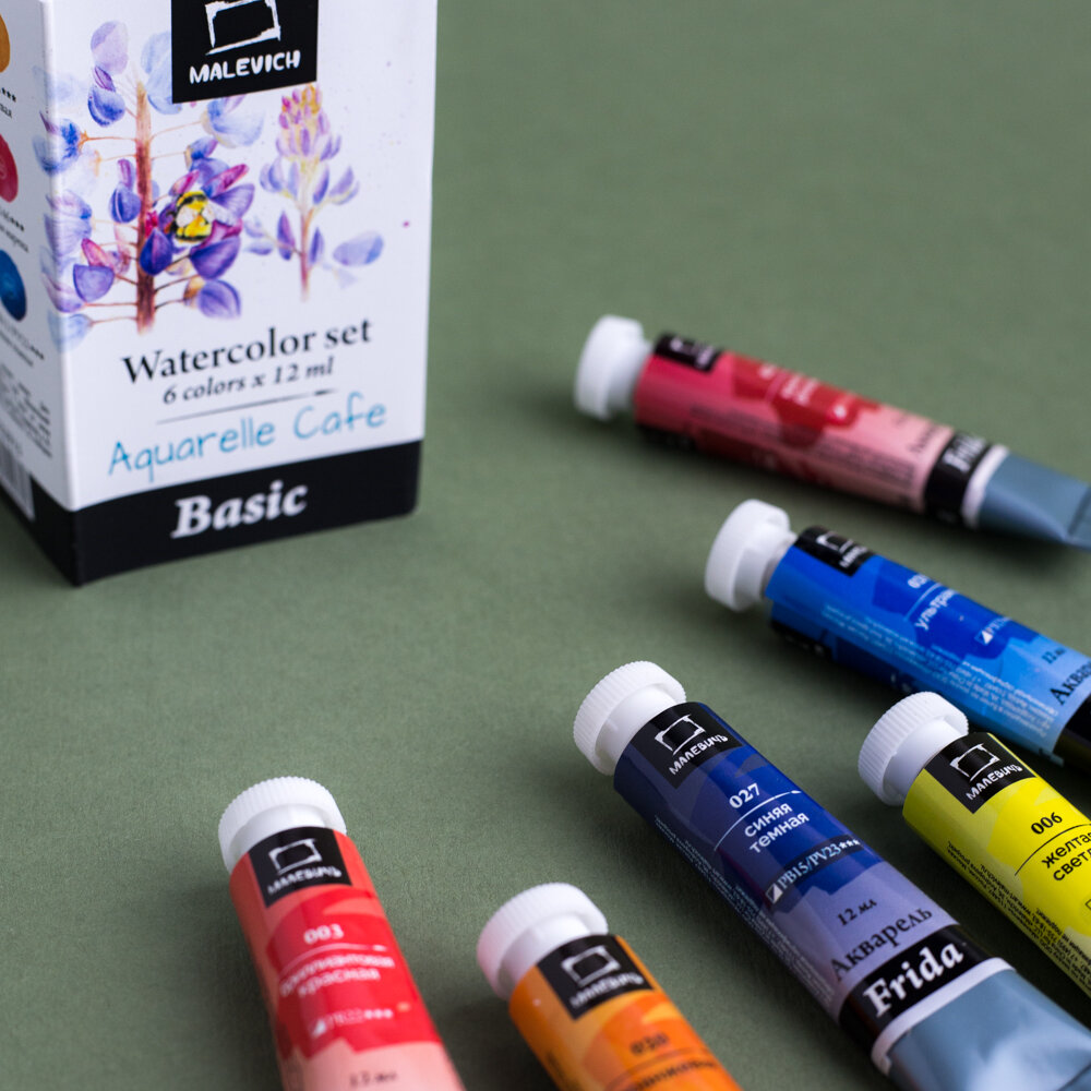 Набор акварели Малевичъ "Frida Basic", 6 цветов, акварель в тубах по 12 мл интересное: