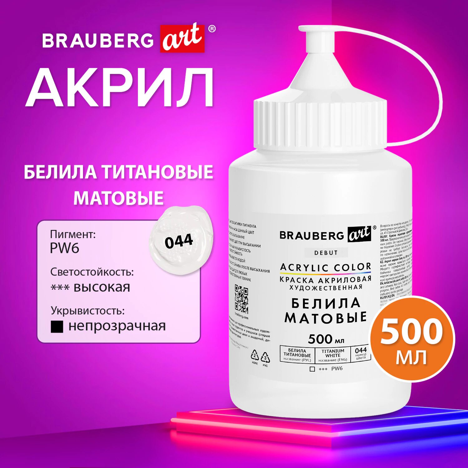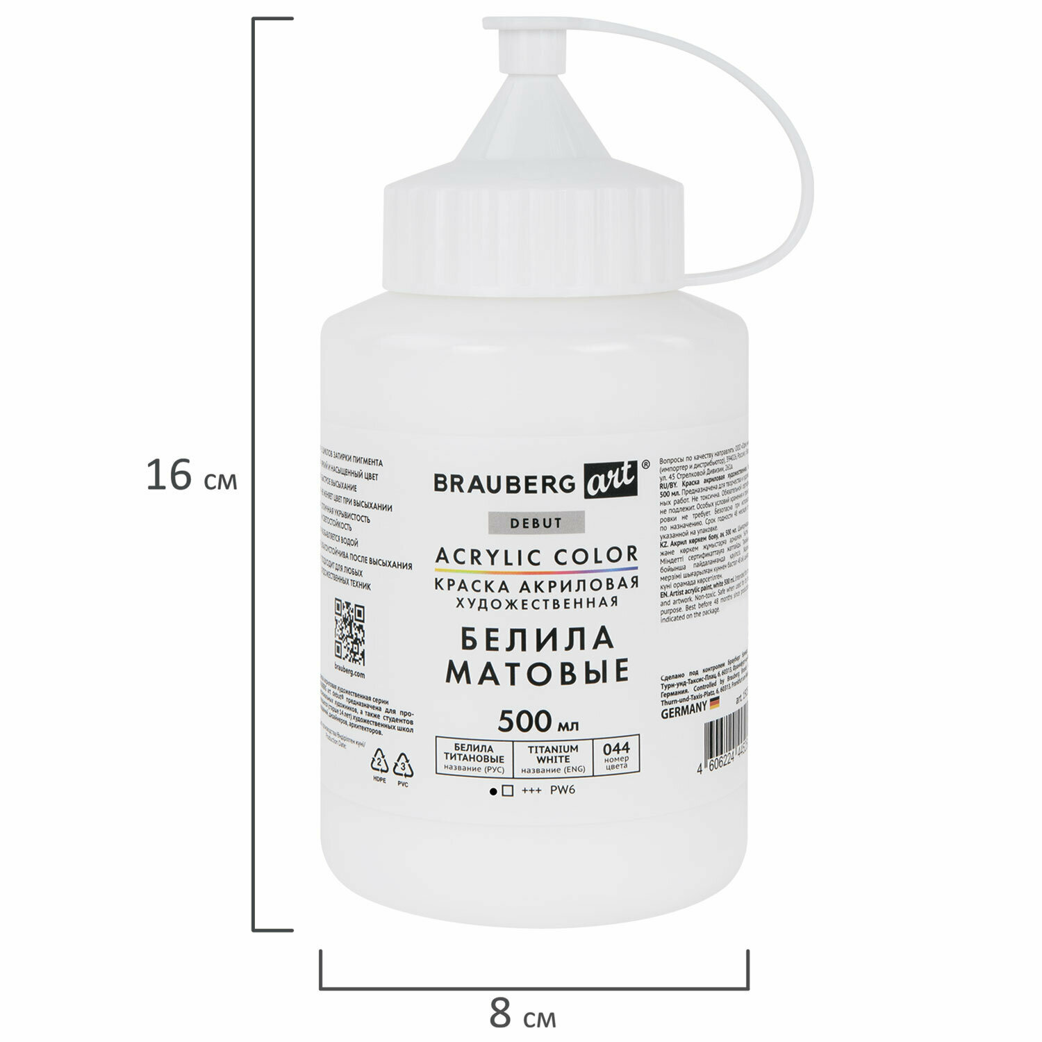 СохранитьАкриловые краски художественные белые матовые, белила титановые акрил для рисования по холсту, дереву 500 мл в банке, Brauberg Art Debut, 192535 интересное: