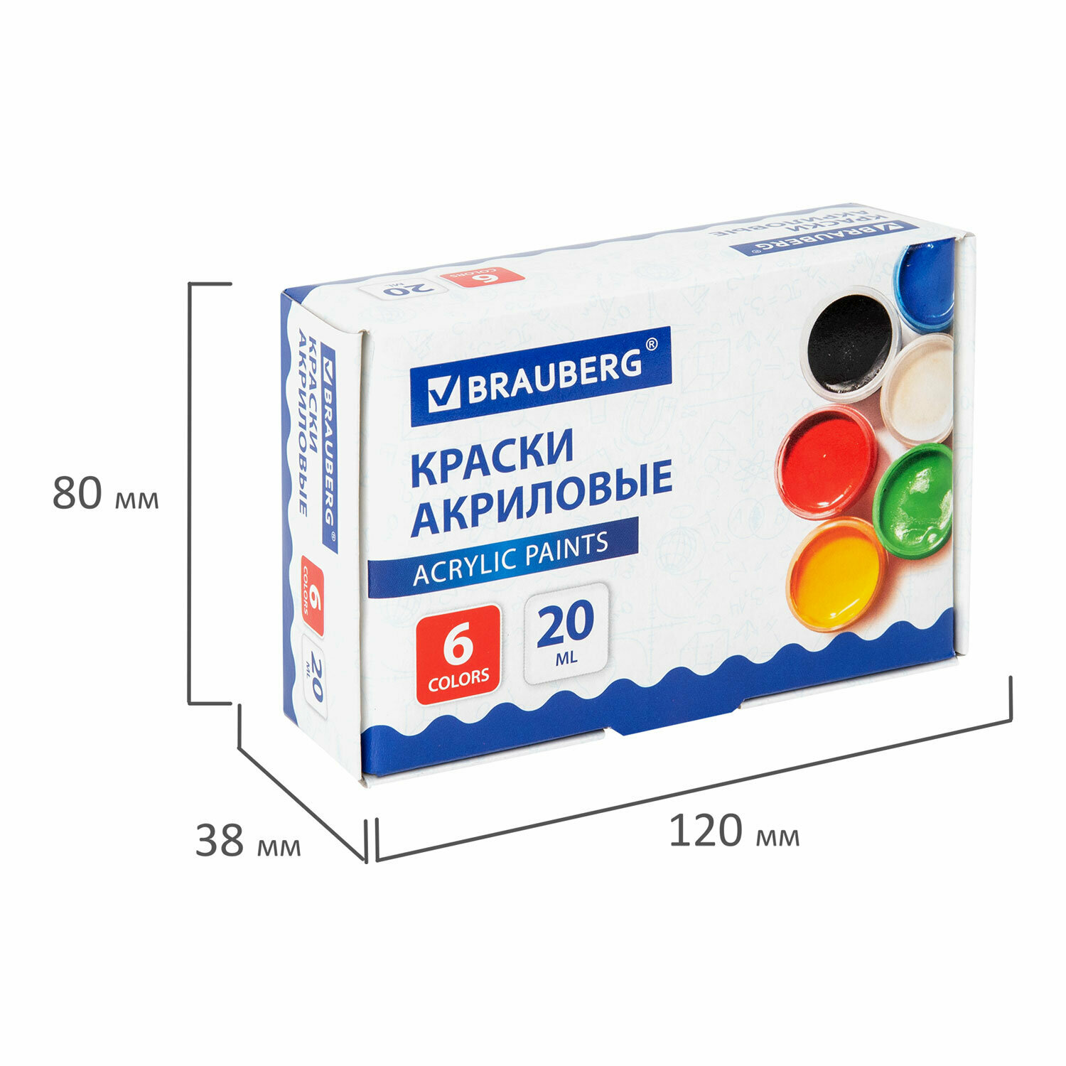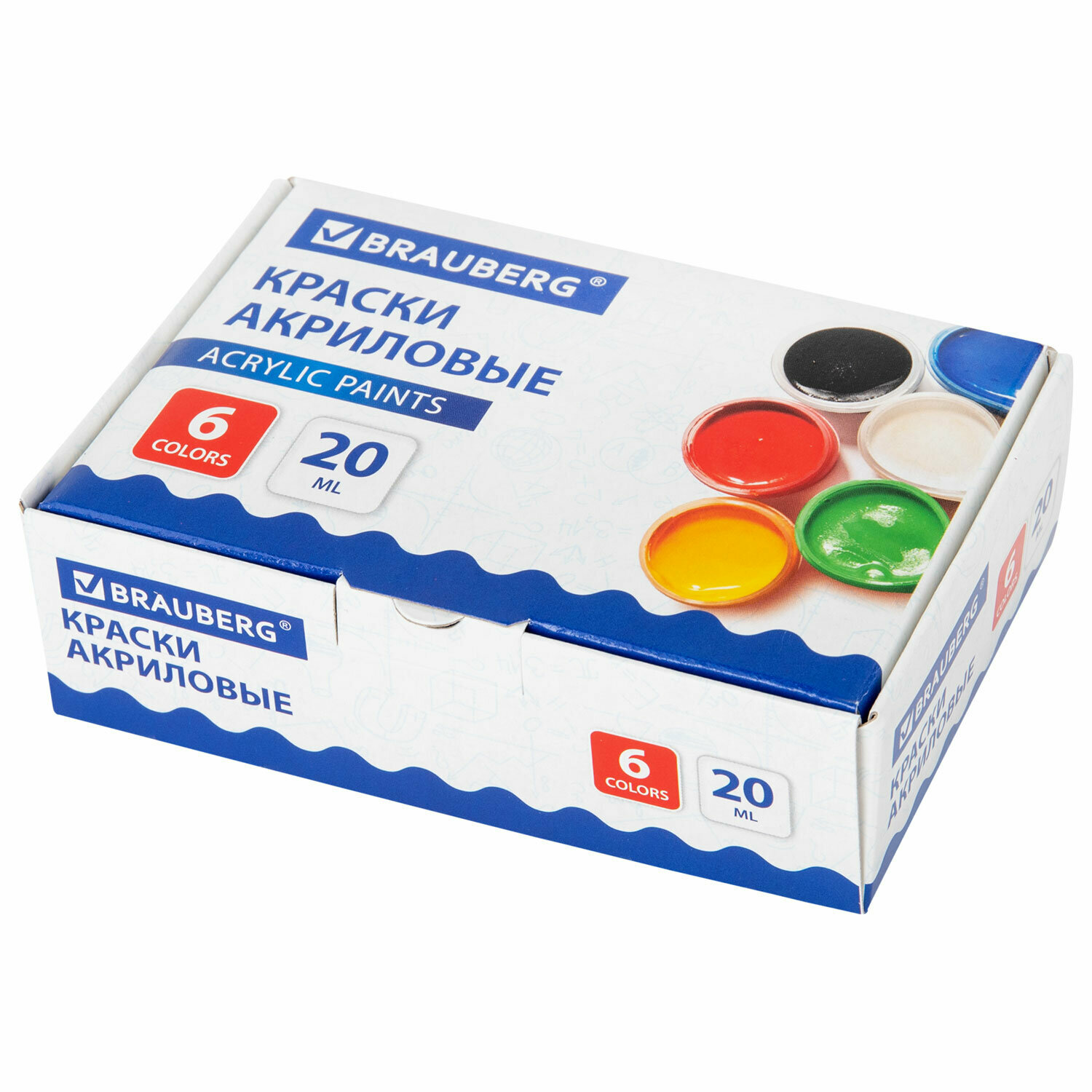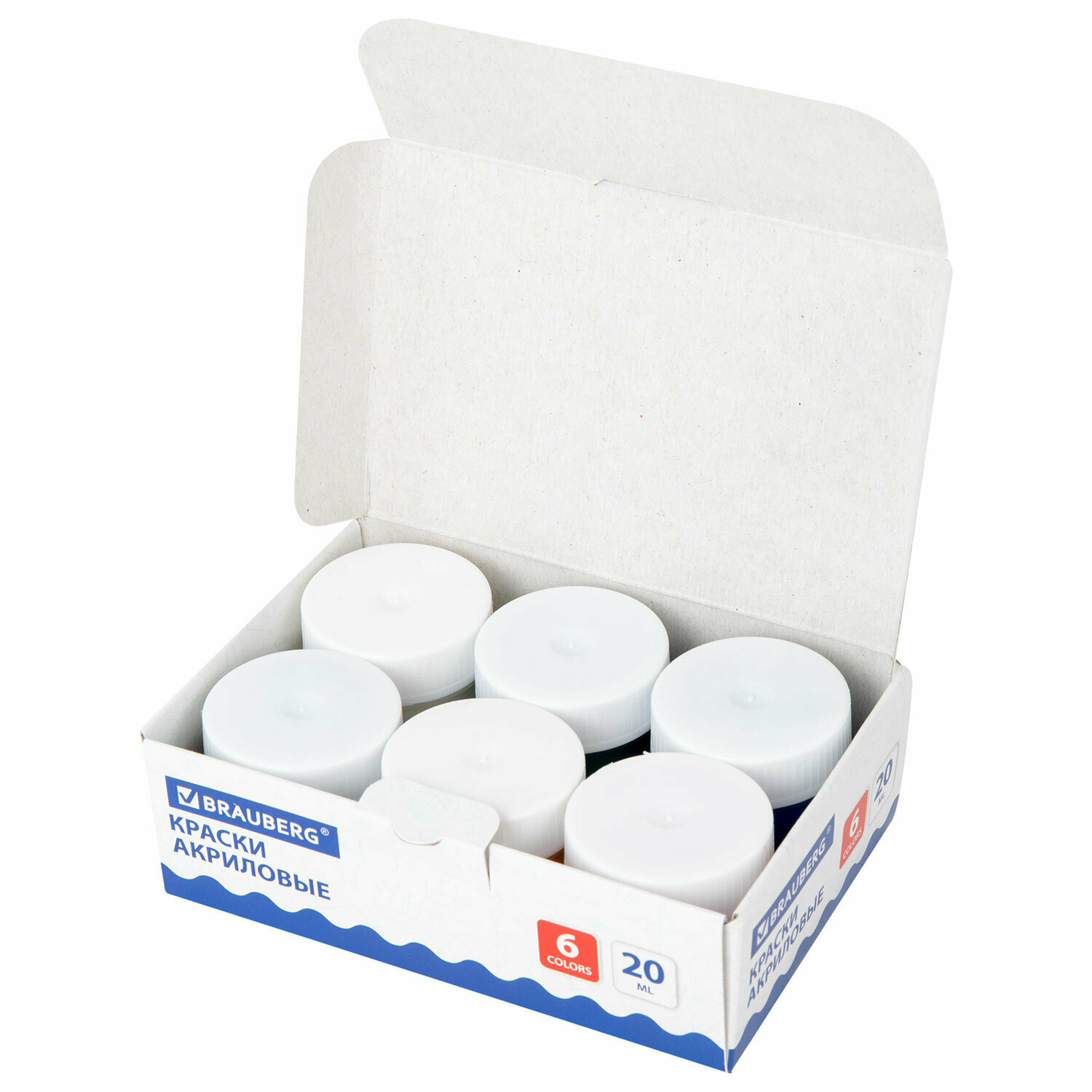 Акриловые краски художественные матовые акрил набор 6 цветов для рисования по холсту, дереву в баночках по 20 мл, Brauberg, 192562 интересное: