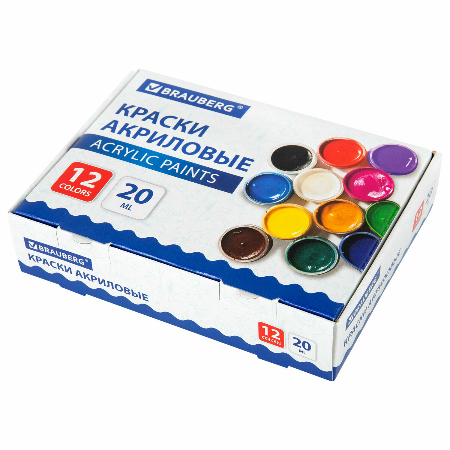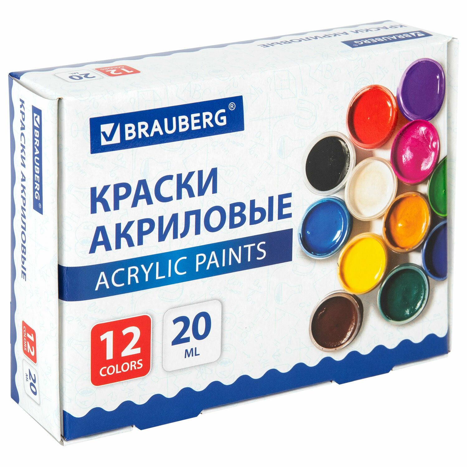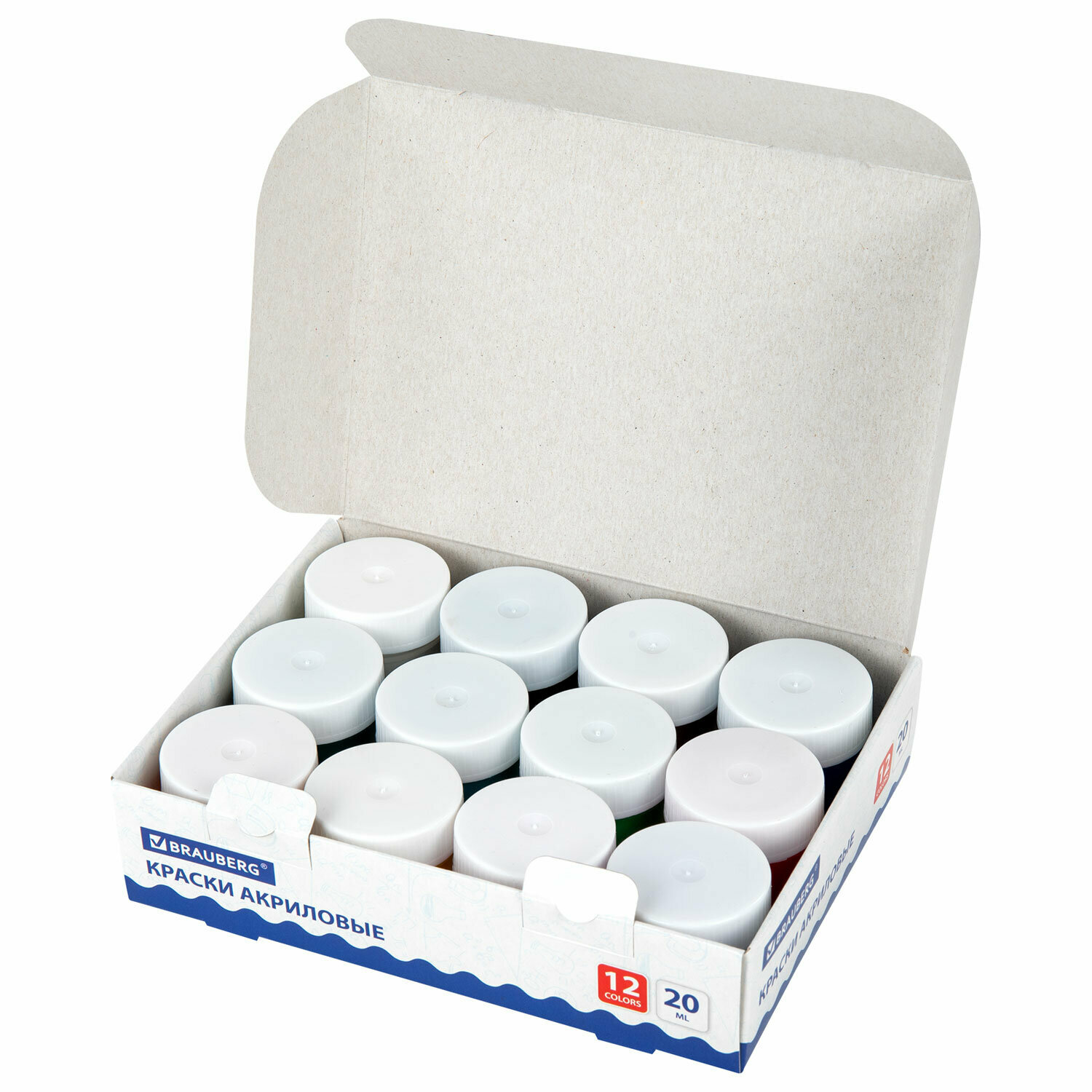 Акриловые краски художественные матовые акрил набор 12 цветов для рисования по холсту, дереву в баночках по 20 мл, Brauberg, 192564 интересное:
