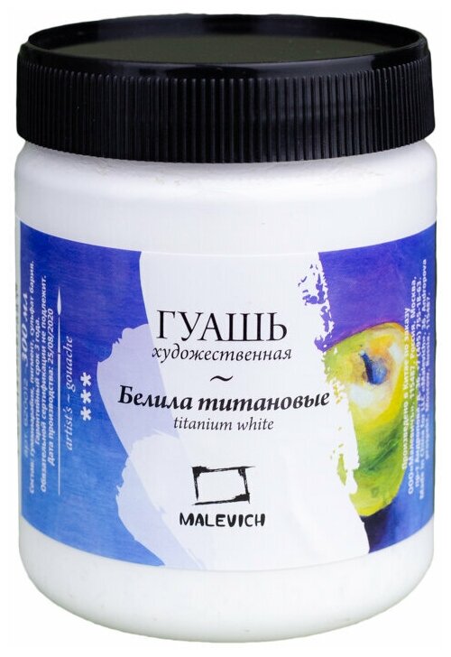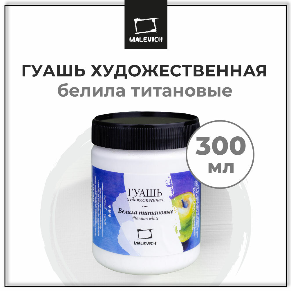 Купить Гуашь Малевичъ, белила титановые, художественная гуашь, 300 мл
