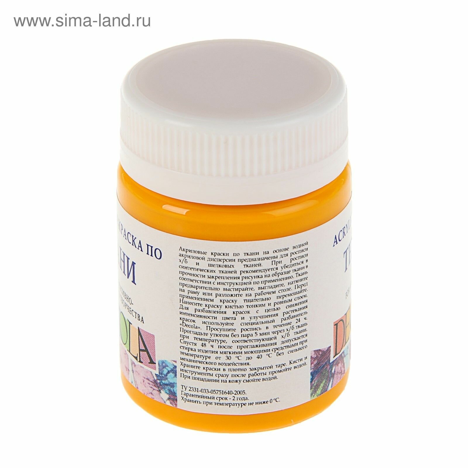Купить Акриловая краска для ткани и одежды Decola желтая темная 50 мл