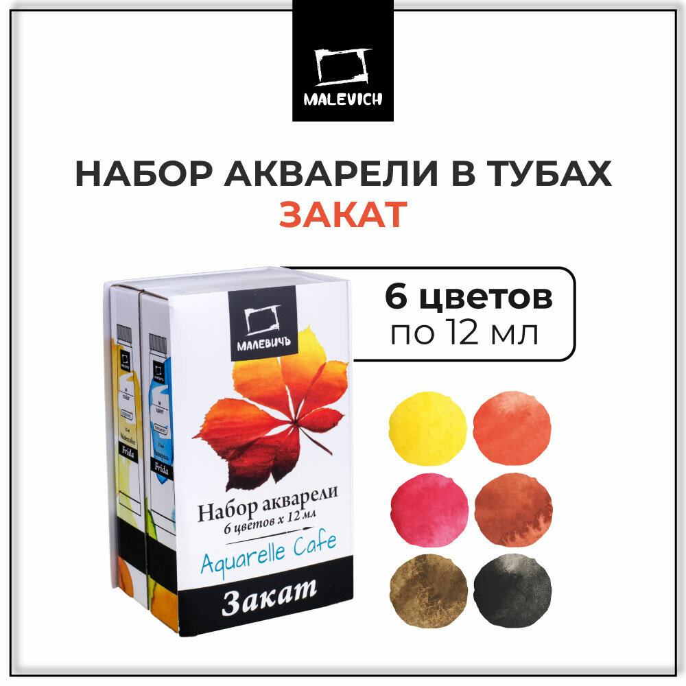 Акварельные краски Малевичъ Frida Sunset, набор акварели 6 цветов, 12мл интересное: