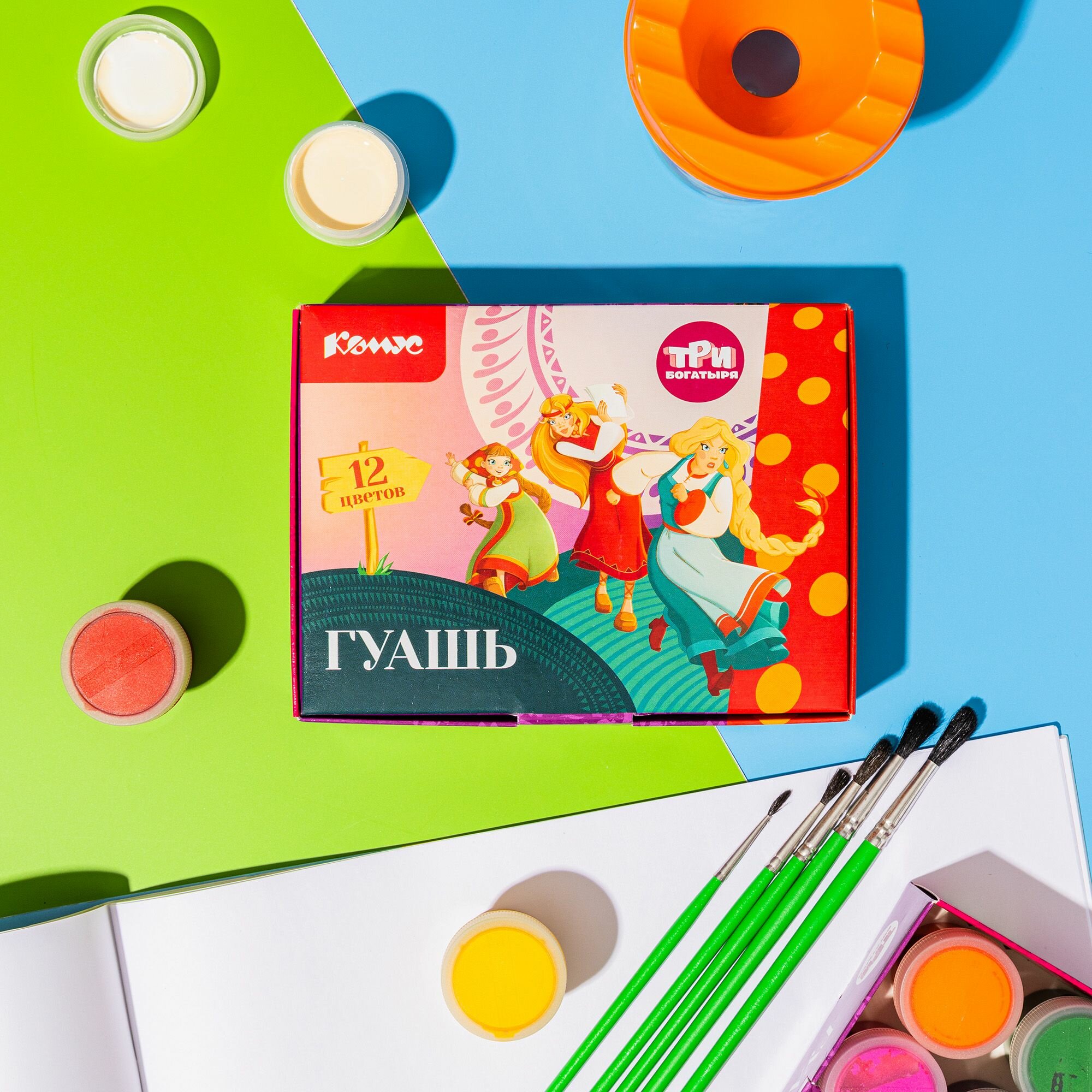 Гуашь для рисования Комус Три богатыря, 12 цветов, 20 мл интересное: