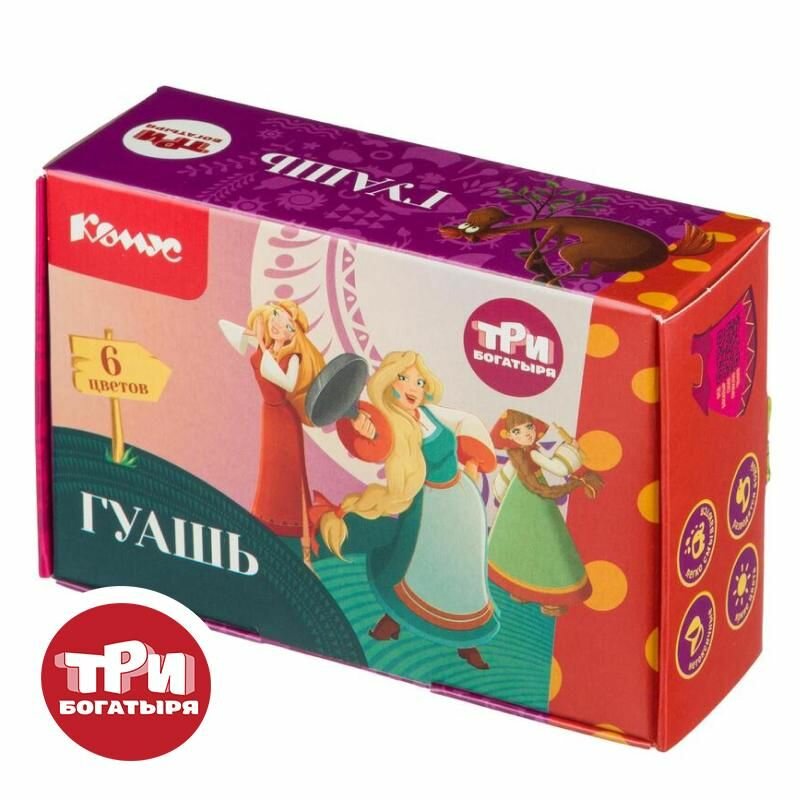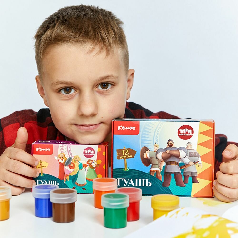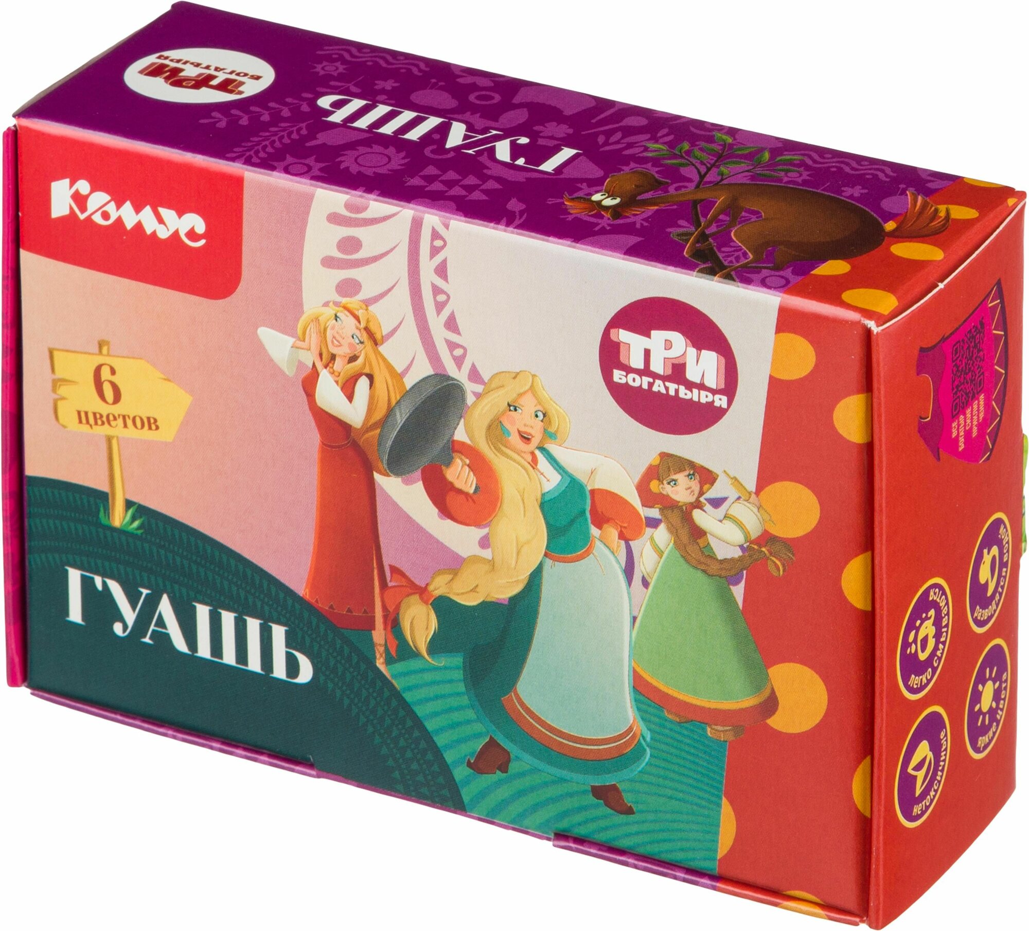 Купить Гуашь для рисования Комус Три богатыря, 6 цветов, 20 мл