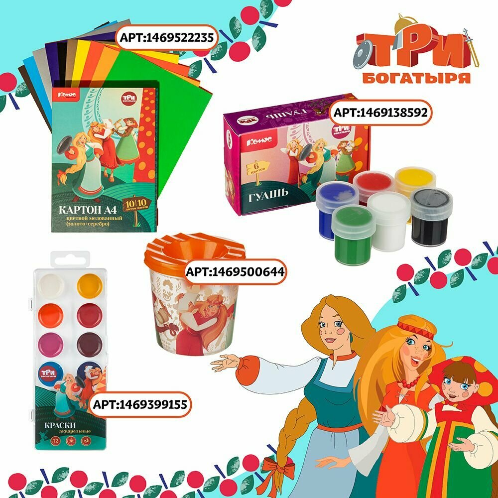 Гуашь для рисования Комус Три богатыря, 12 цветов, 20 мл