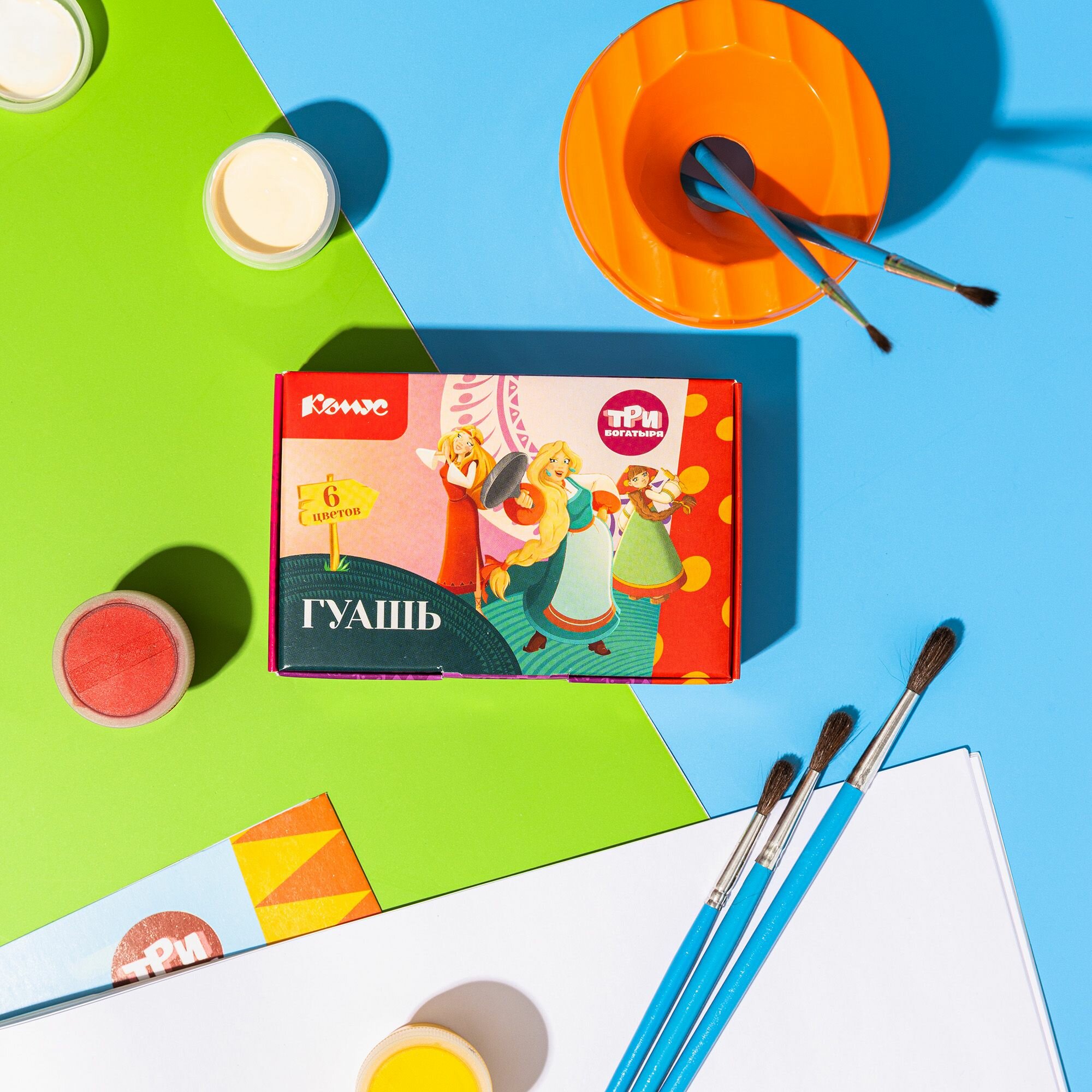 Гуашь для рисования Комус Три богатыря, 6 цветов , 20 мл