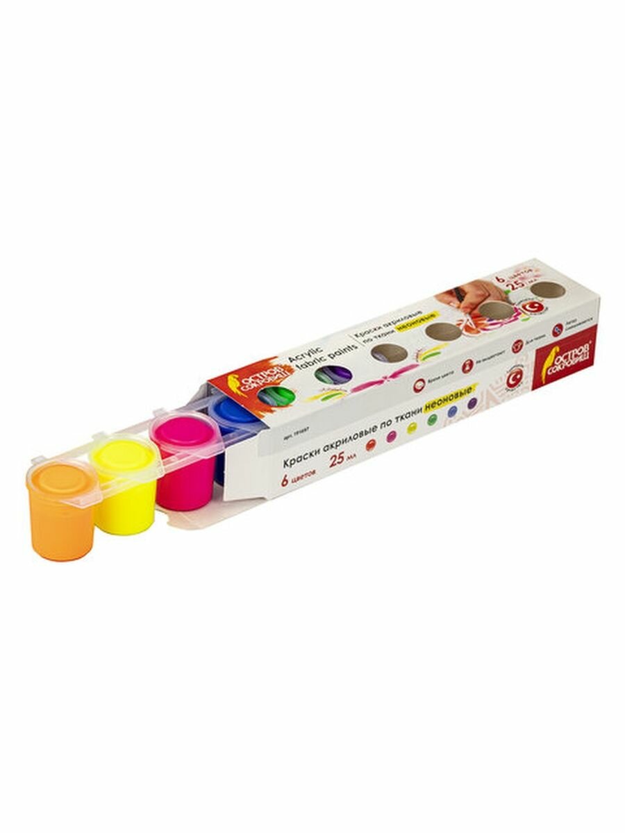 Купить Краски акриловые по ткани неон остров сокровищ 6 цветов по 25 мл, 191697 (арт. 191697)