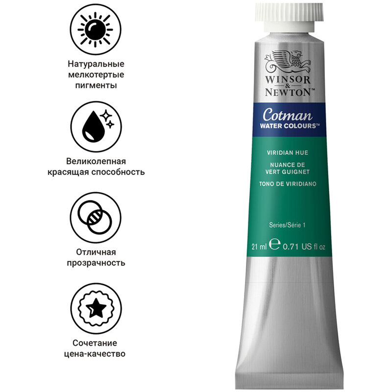Купить Winsor&Newton Акварель "Cotman" оттенок виридиан 21мл