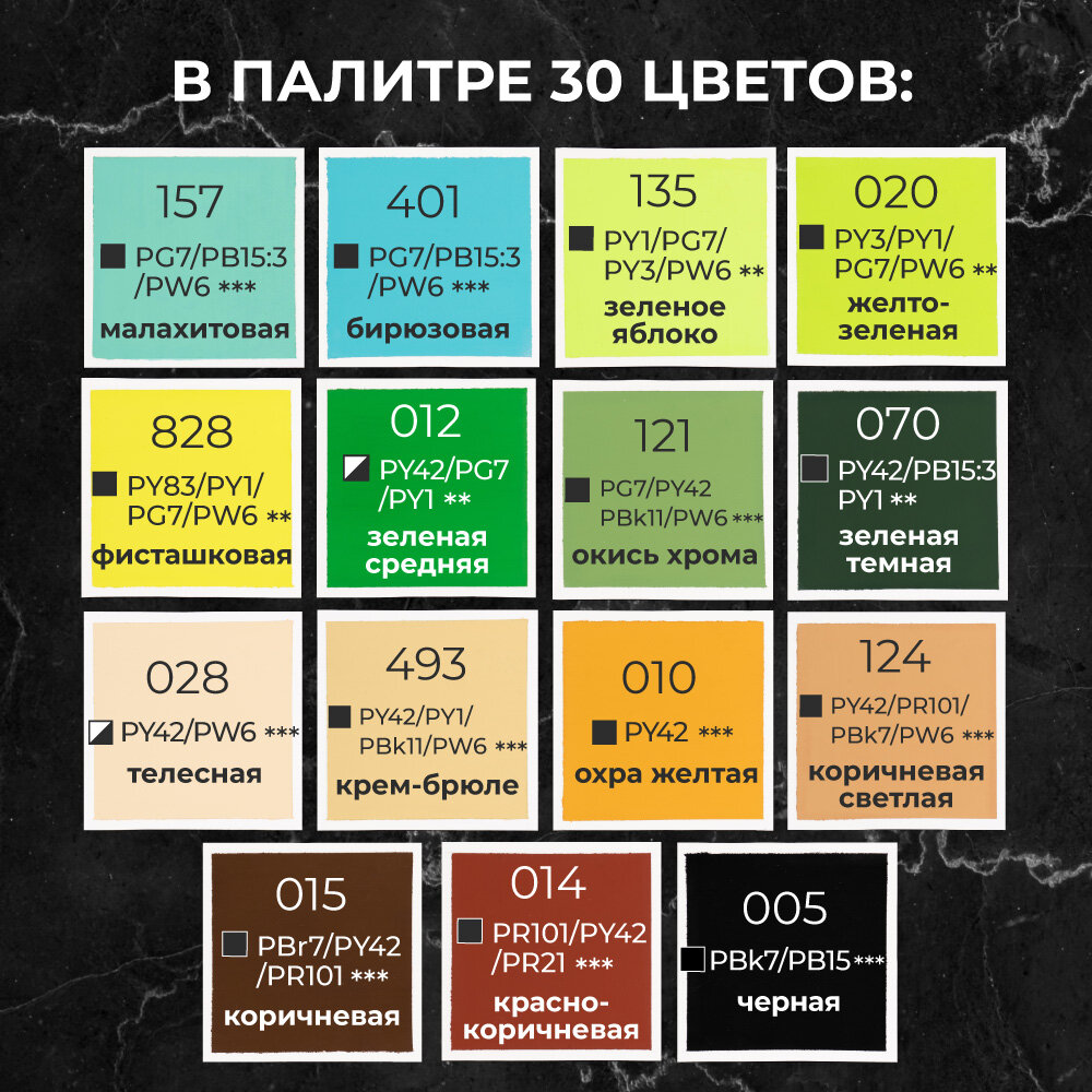 Набор матовых акриловых красок Малевичъ, акрил матовый 30 цветов интересное: