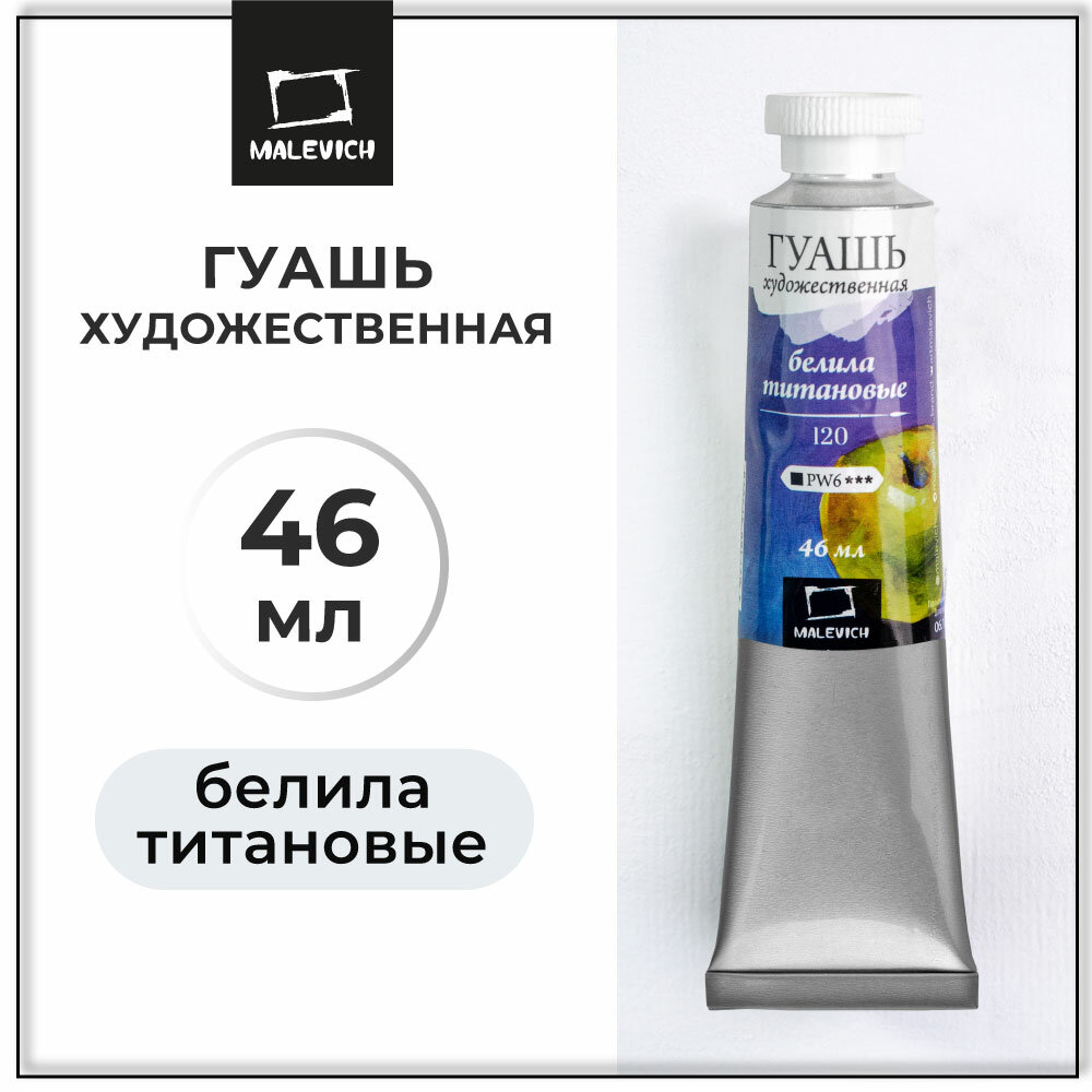 Белая гуашь Малевичъ, белила титановые, туба 46 мл, гуашевая краска поштучно интересное: