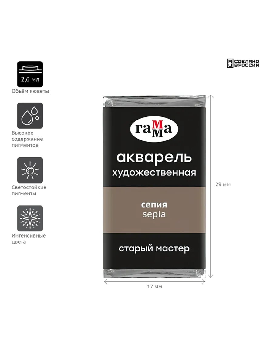 Купить Акварель художественная Гамма - сепия, кювета
