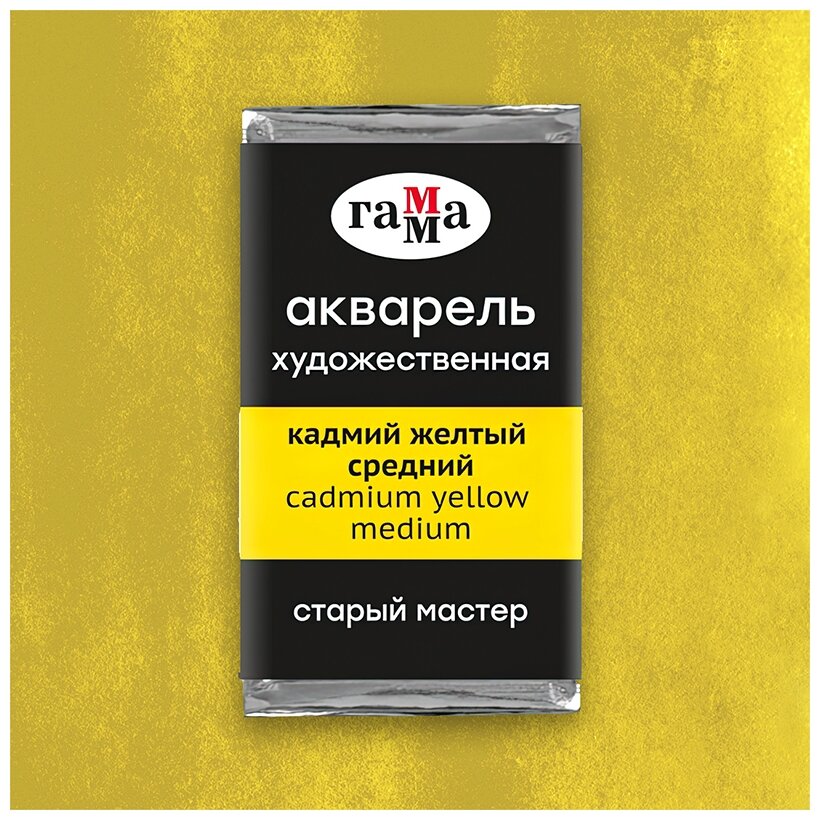 Купить Акварель художественная в кювете 2,6 мл, Гамма "Старый Мастер", кадмий желтый средний, 200521103, 1 шт.