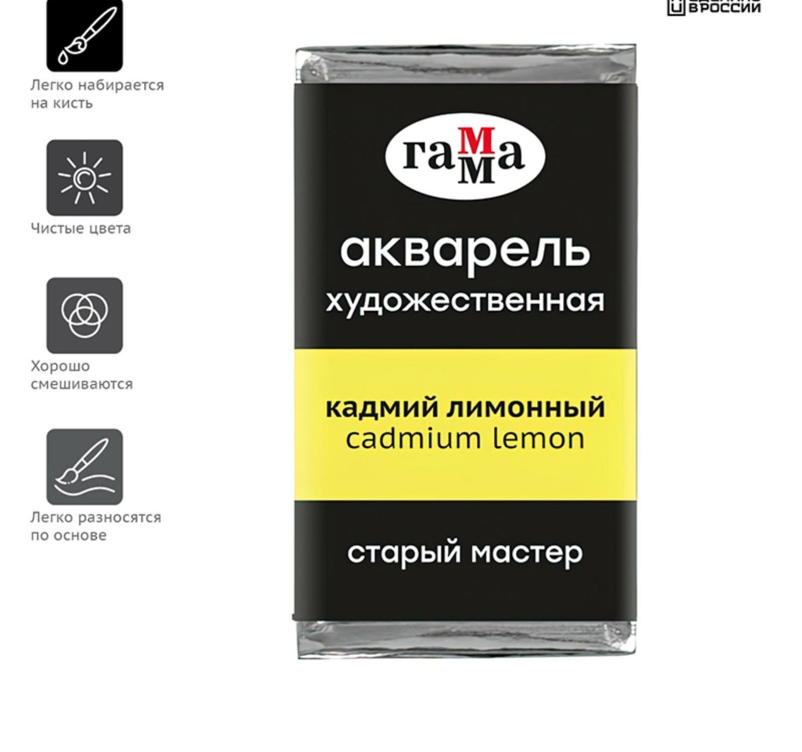 Акварель художественная в кювете 2,6 мл, Гамма "Старый Мастер", кадмий желтый средний, 200521103, 1 шт.