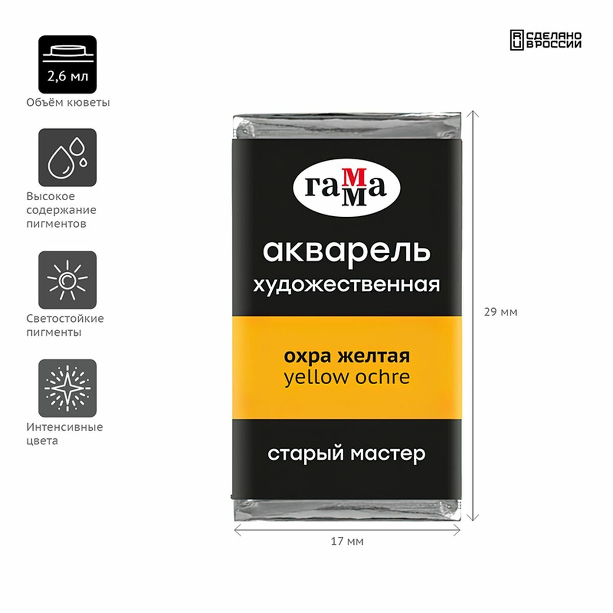 Купить Краска акварельная художественная Гамма "Старый Мастер", охра желтая, 2,6мл, кювета (200521116)