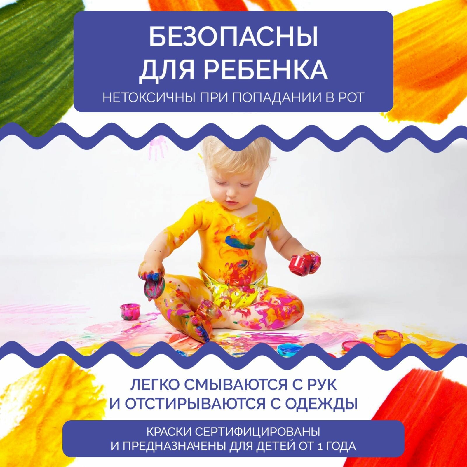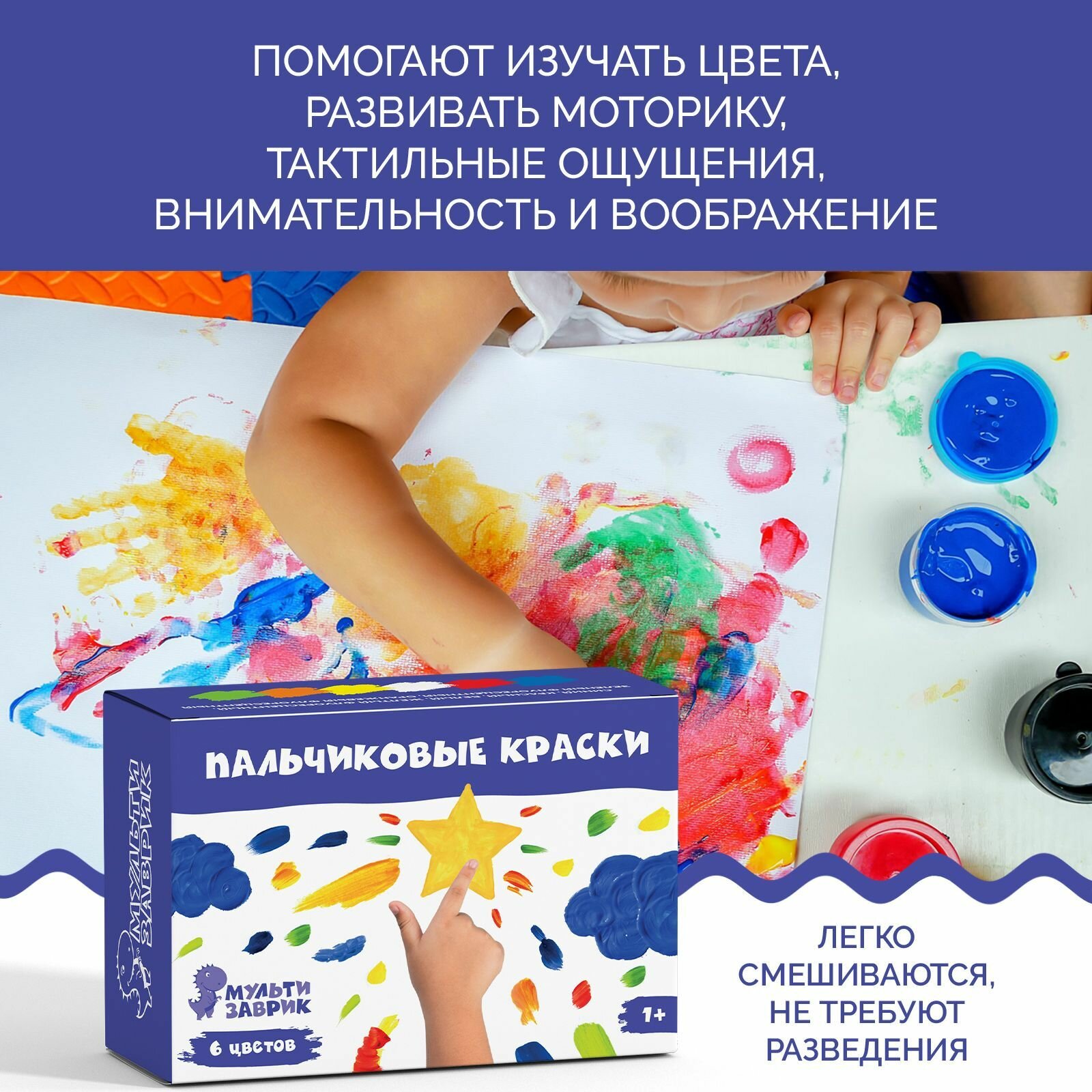 Пальчиковые краски Мультизаврик, для малышей, 6 ярких цветов, от 1 года интересное: