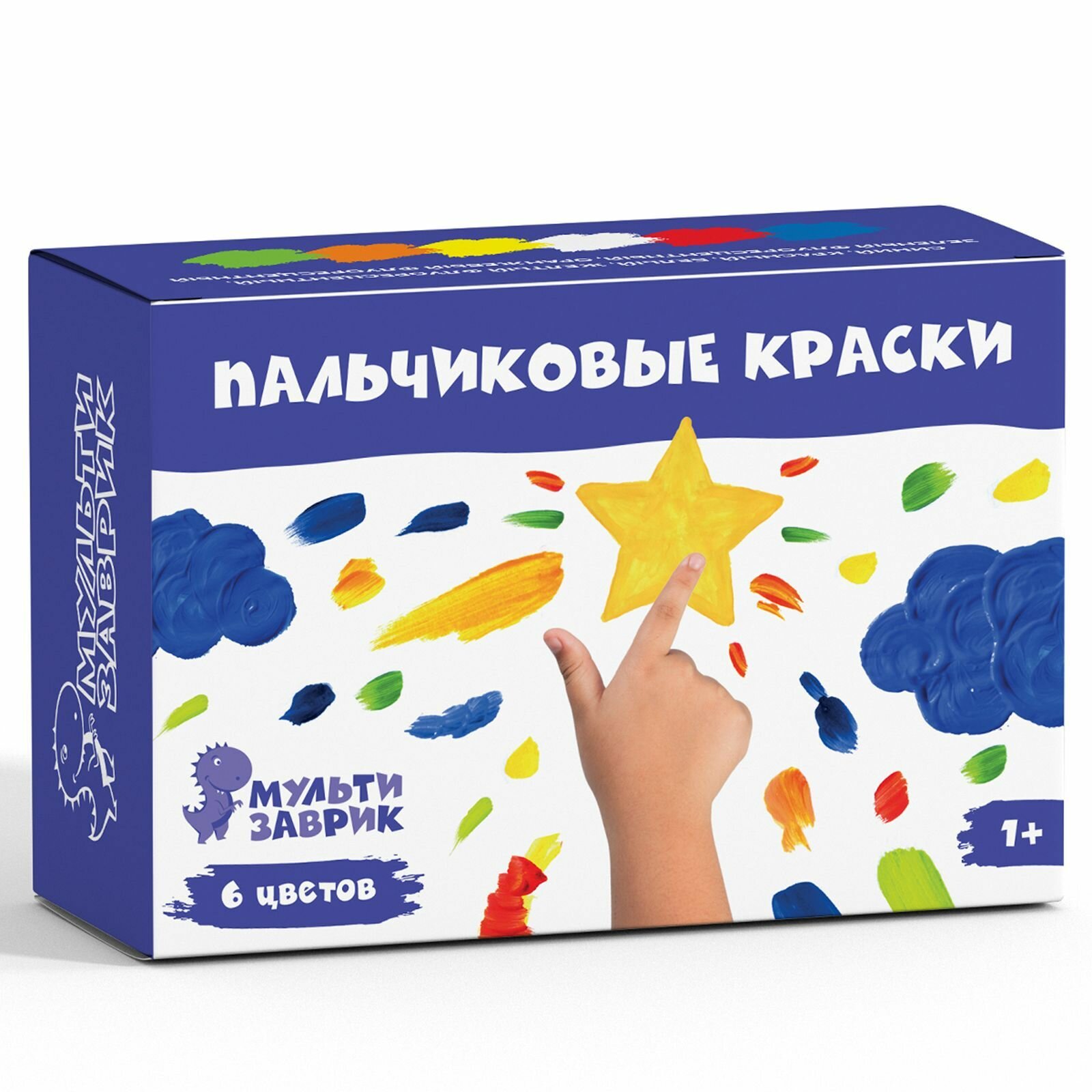 Купить Пальчиковые краски Мультизаврик, для малышей, 6 ярких цветов, от 1 года