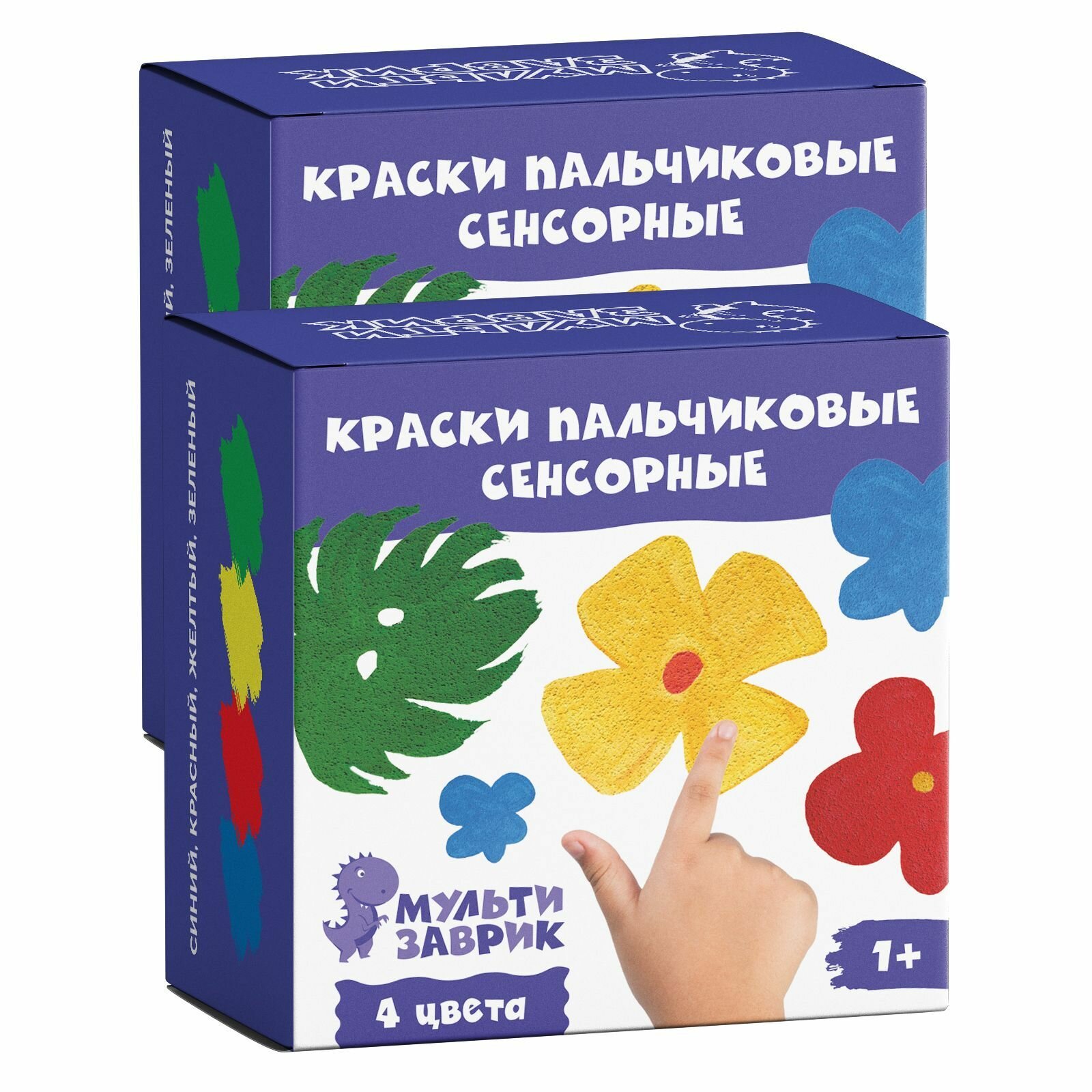 Пальчиковые краски мультизаврик, 4 цвета, сенсорные, 200г, 40мл