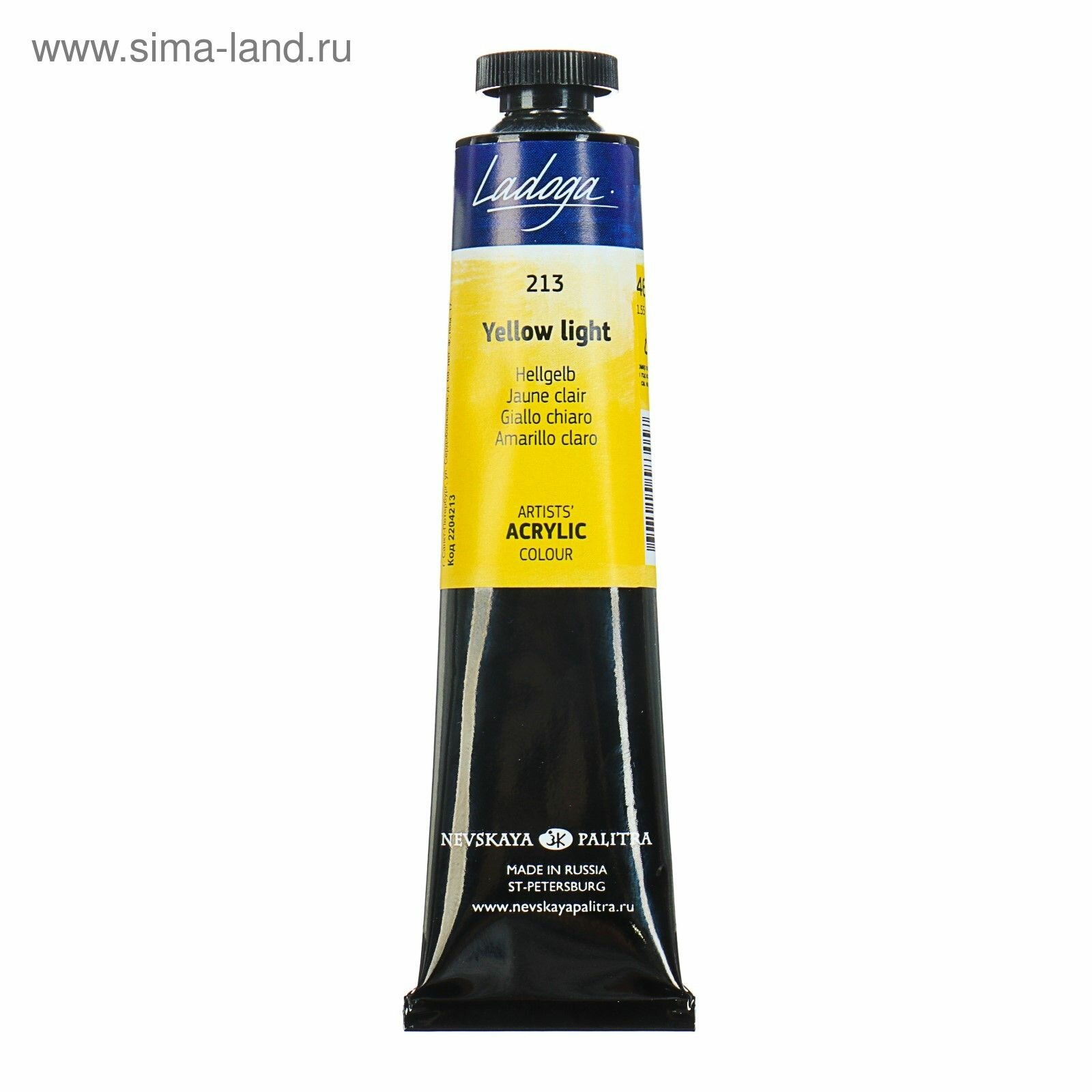 Купить Краска Акриловая Художественная "Ладога" 46 мл. Желтая Светлая