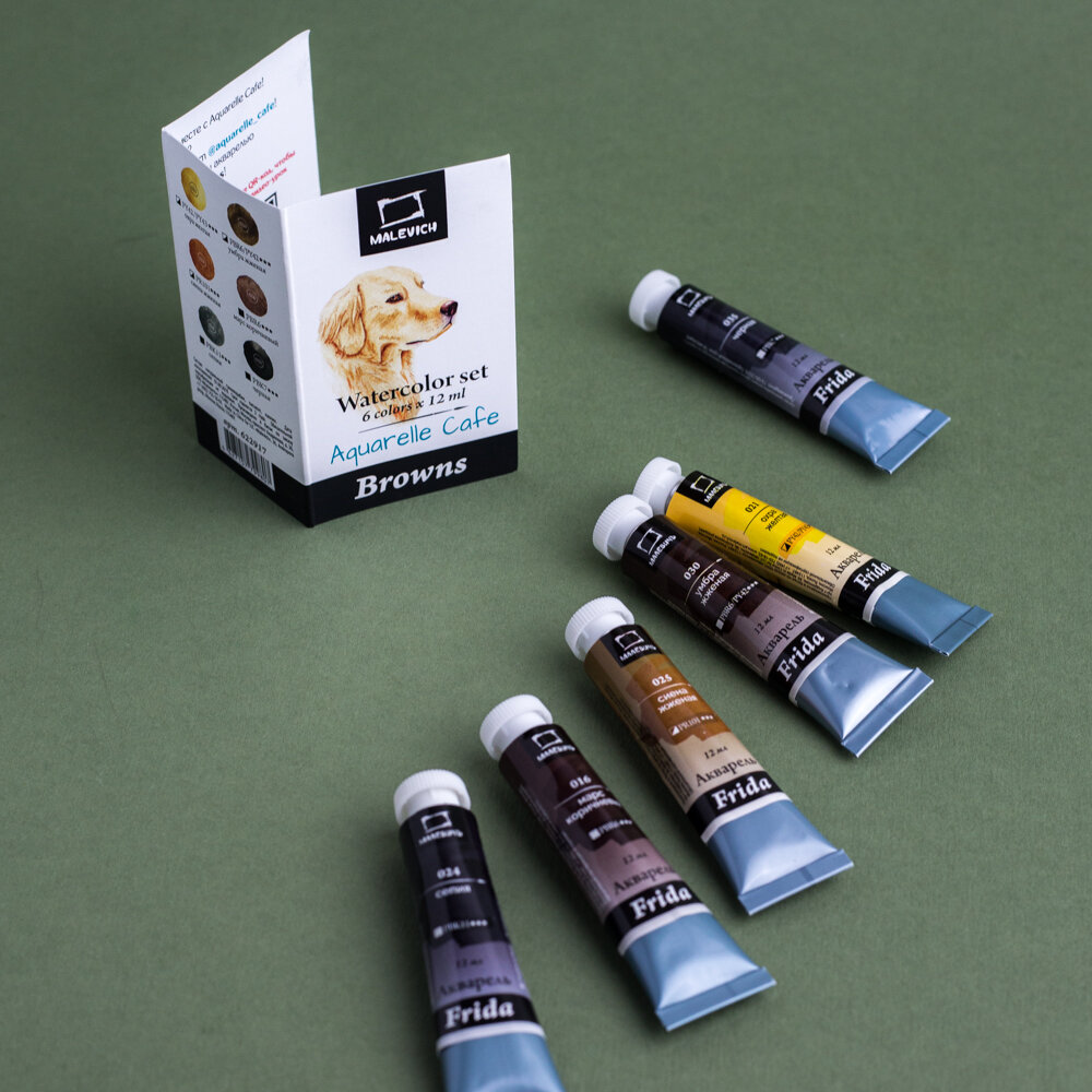Набор акварели Малевичъ Frida, Browns, акварельные краски 6 цветов по 12 мл интересное: