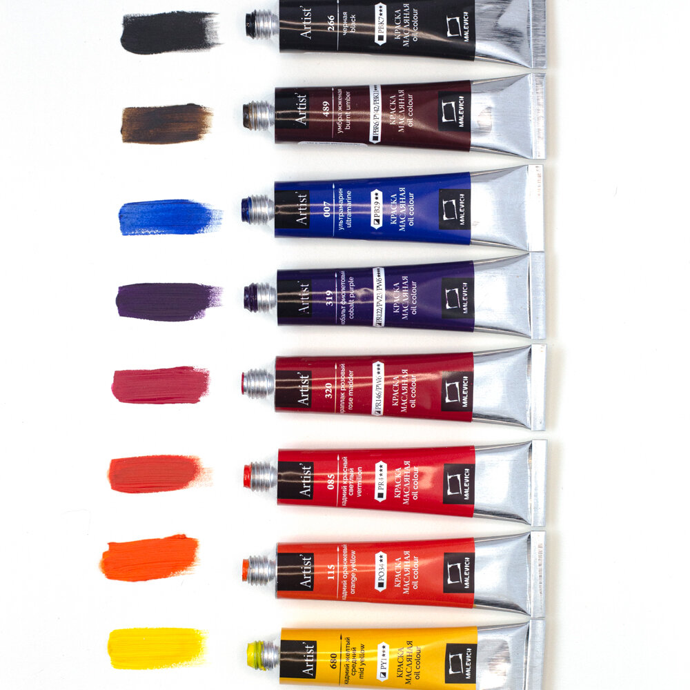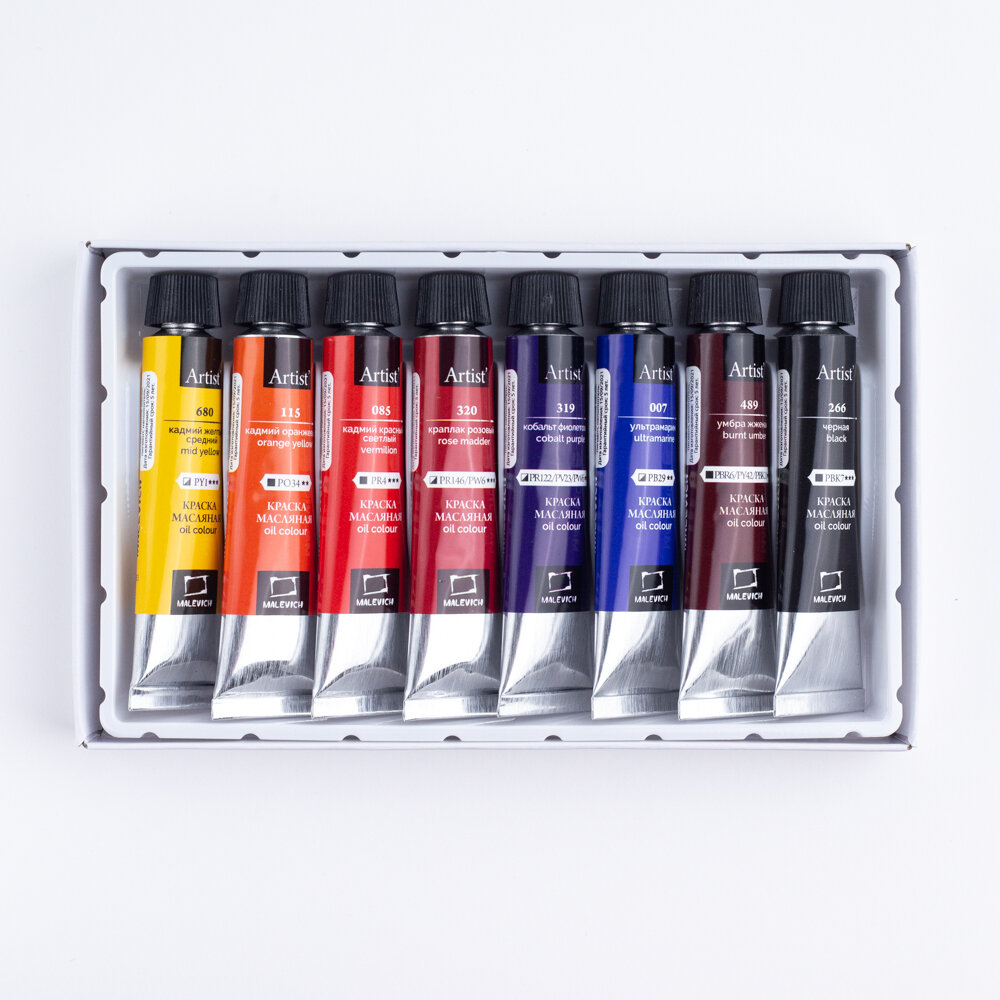 Купить Набор масляных красок Малевичъ, закат, художественное масло 8 цветов по 12мл