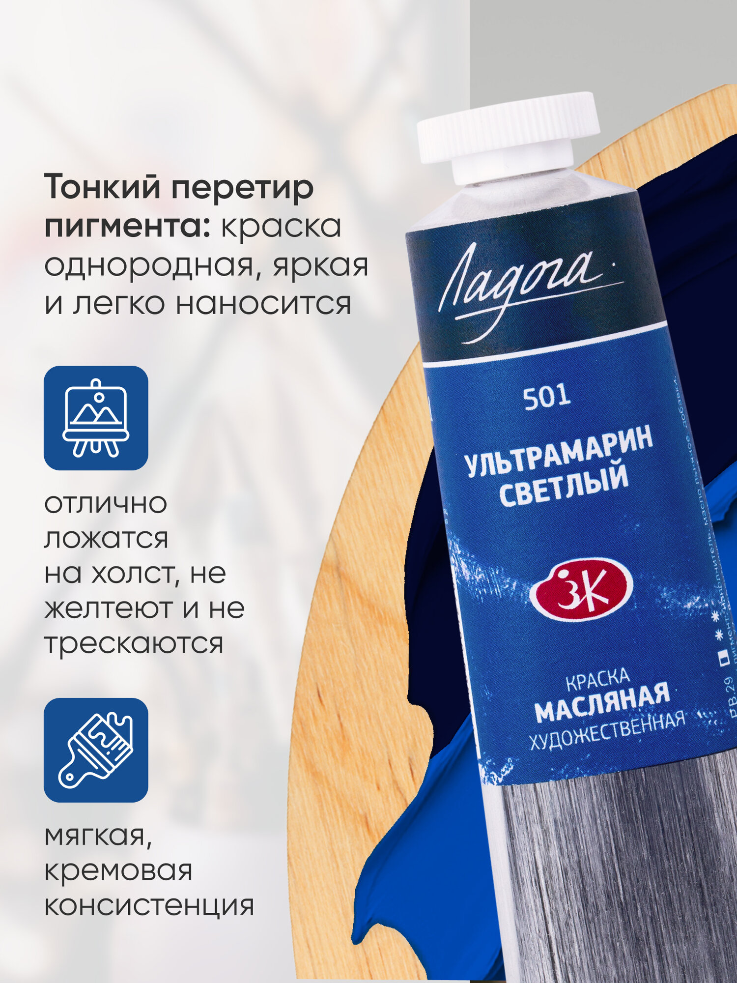 СохранитьМасляная краска для рисования Ладога ультрамарин светлый 501 в тубе 46 мл интересное: