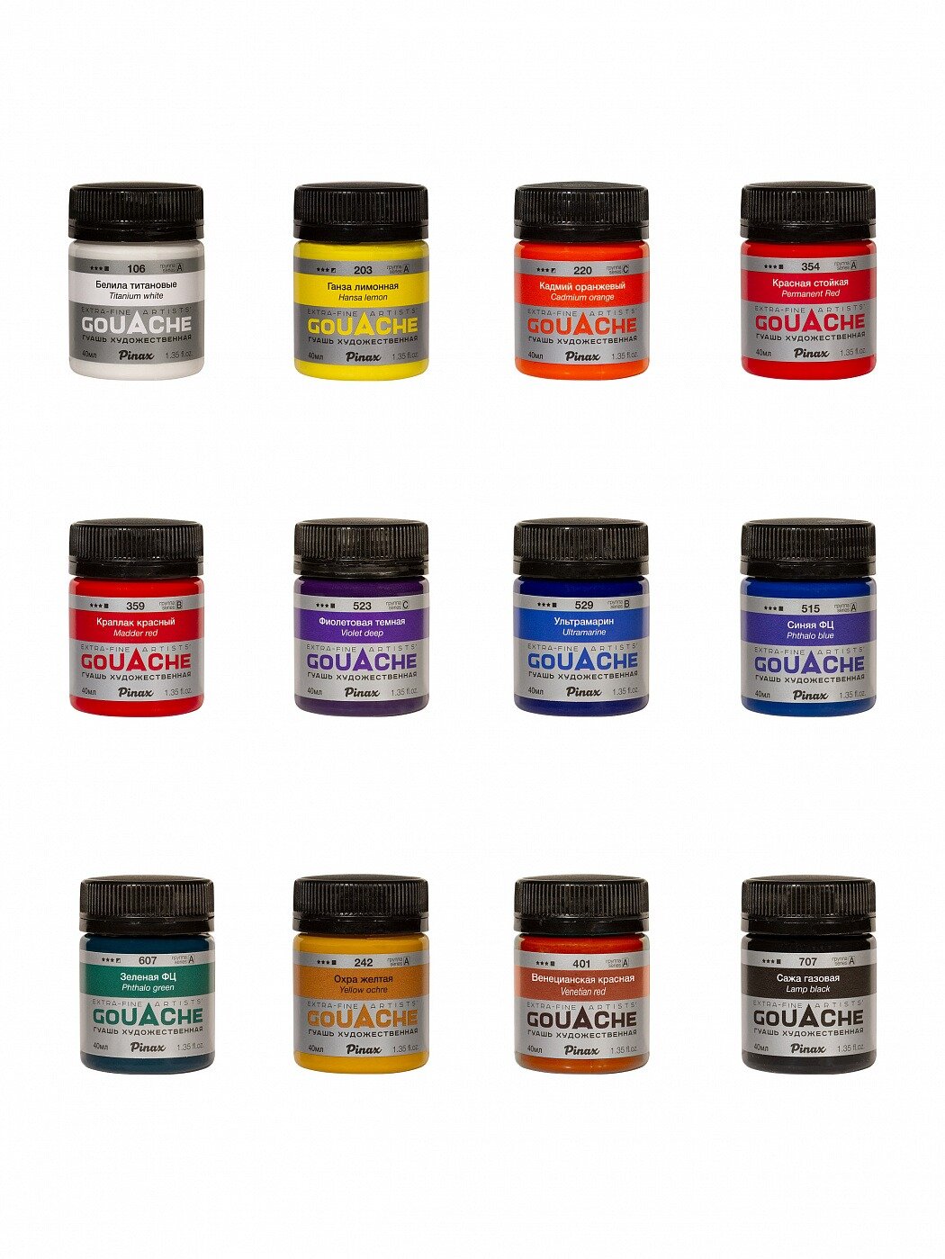 Набор гуашь художественная Pinax, 12 цветов, 40мл, картон. коробка интересное: