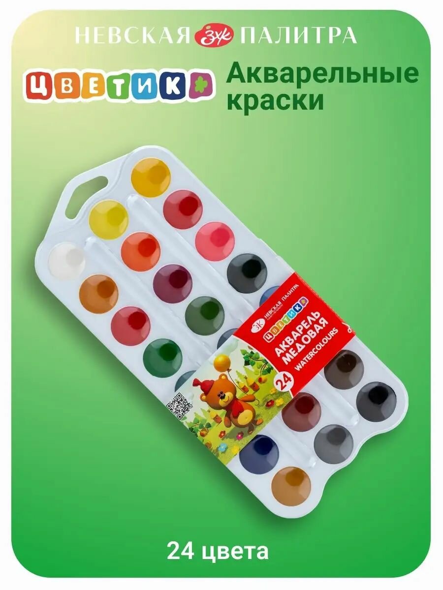 Купить Акварельные краски для рисования Цветик акварель художественная медовая 24 цвета