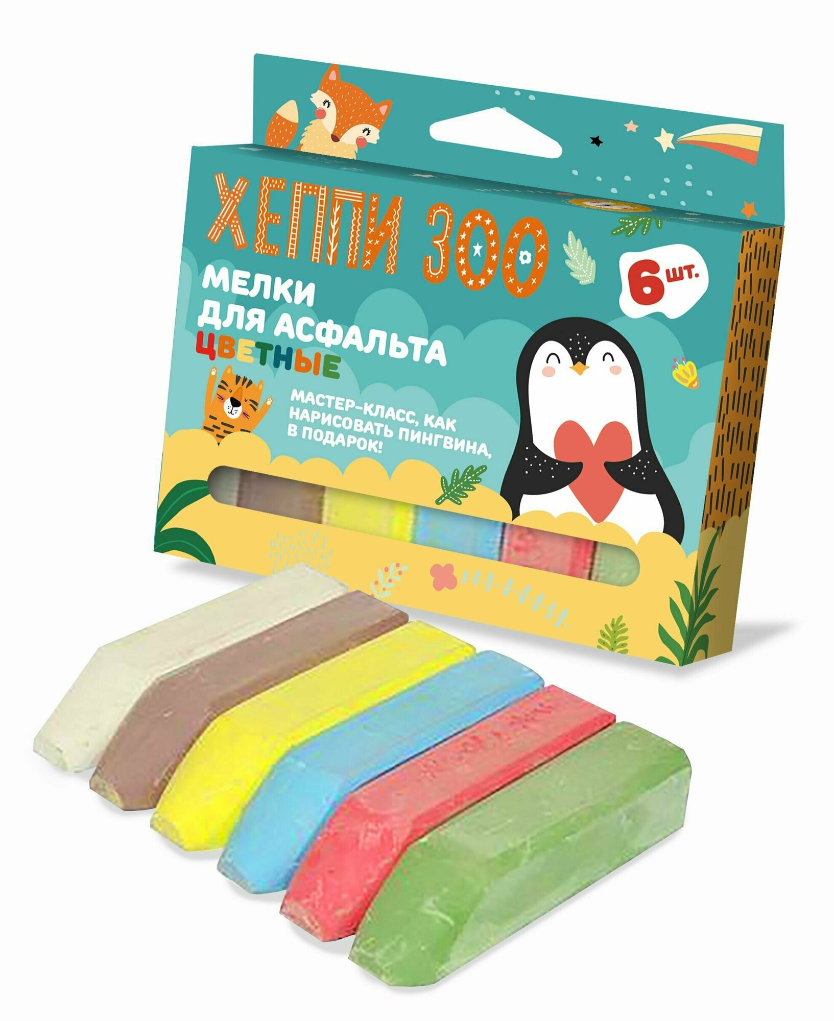 Набор 6 цветных мелков для асфальта ND Play / Хеппи ЗОО / Животные (12,3 х 8,4 х 2,2 см) интересное:
