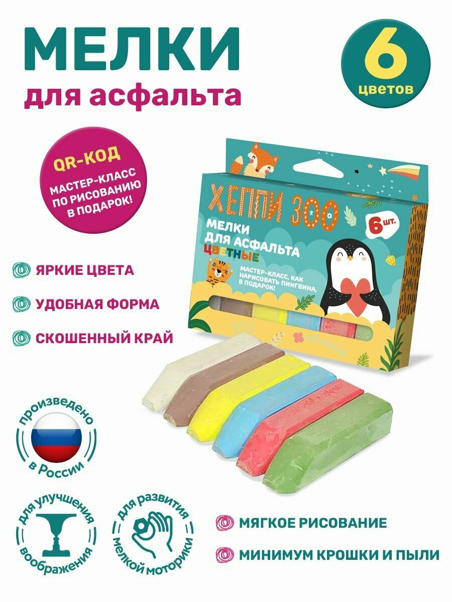 Купить Набор 6 цветных мелков для асфальта ND Play / Хеппи ЗОО / Животные (12,3 х 8,4 х 2,2 см)