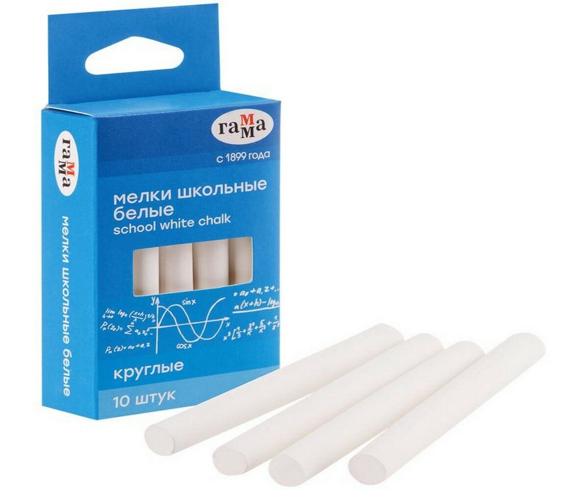 Мелки школьные Гамма, белые, 10шт, мягкие, круглые, картон. упак, европодвес 292217 интересное: