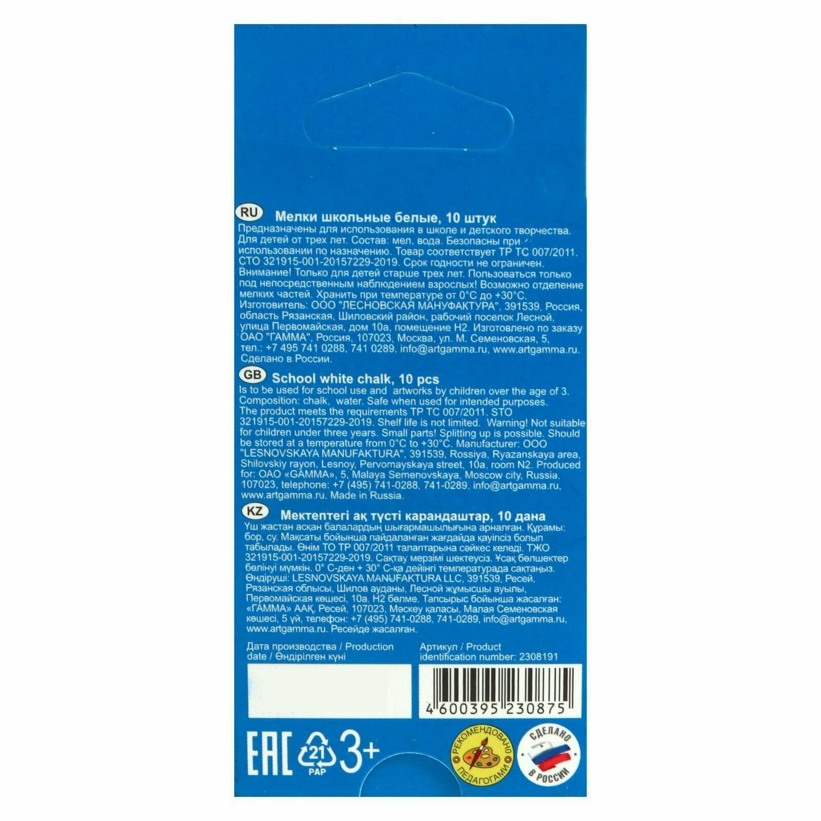 Купить Мелки школьные Гамма, белые, 10шт, мягкие, круглые, картон. упак, европодвес 292217