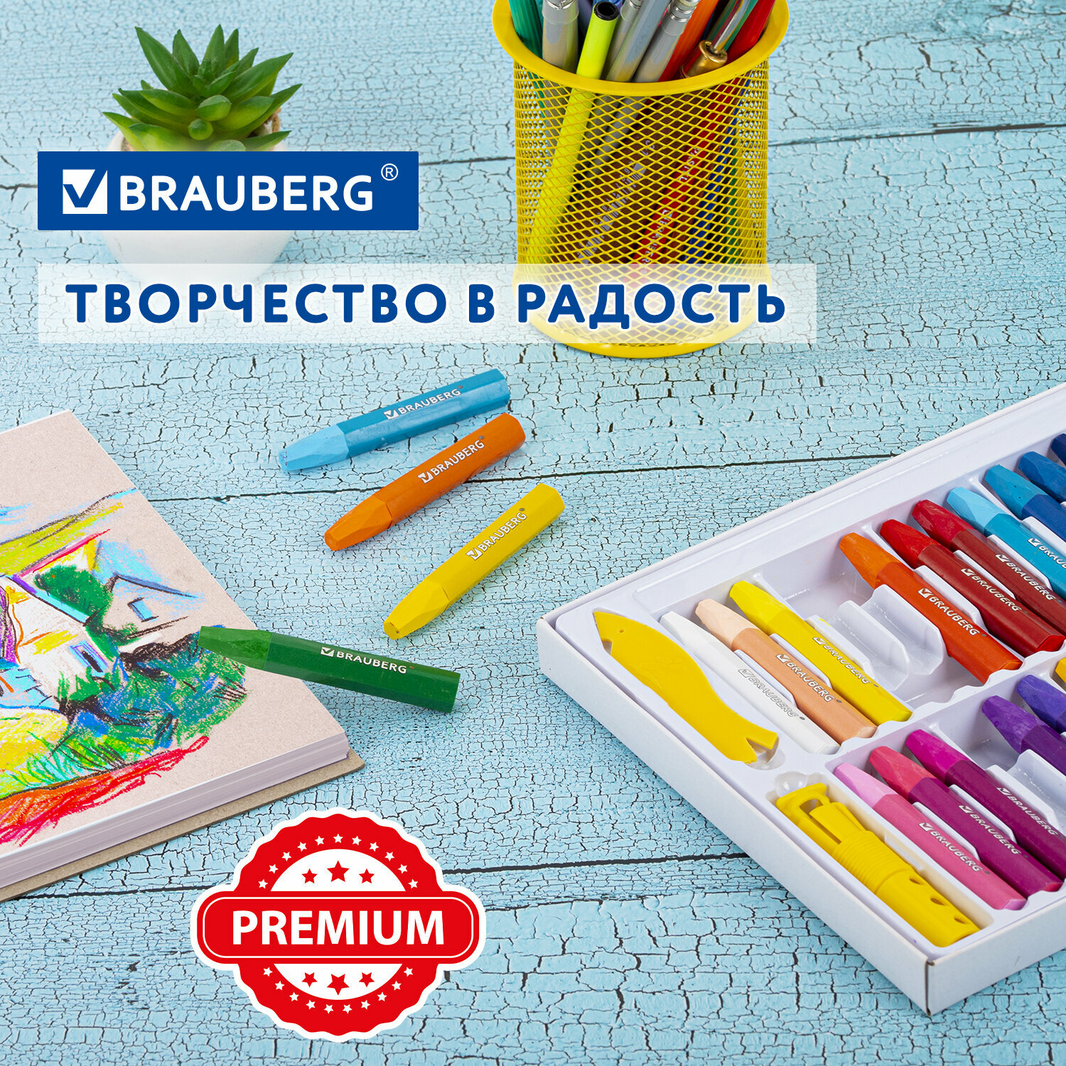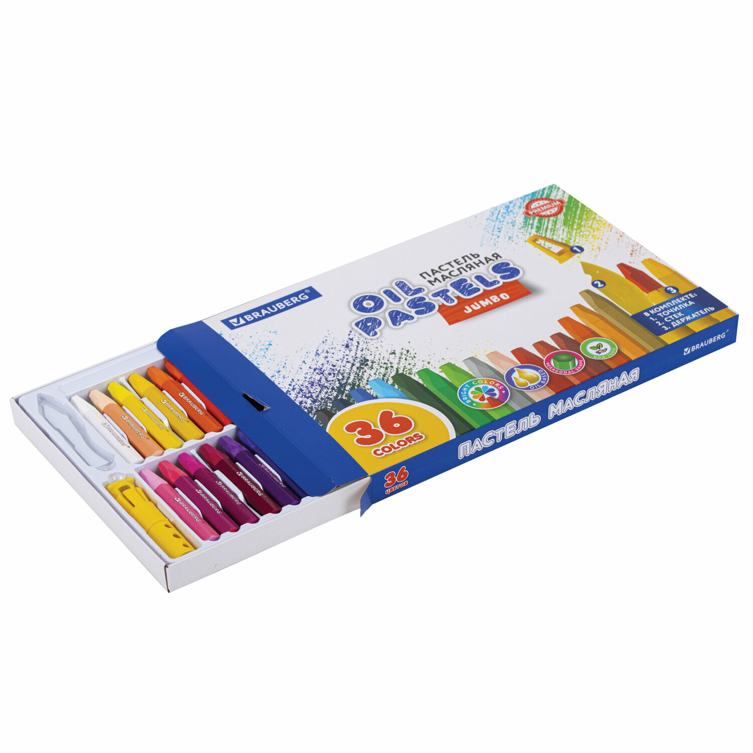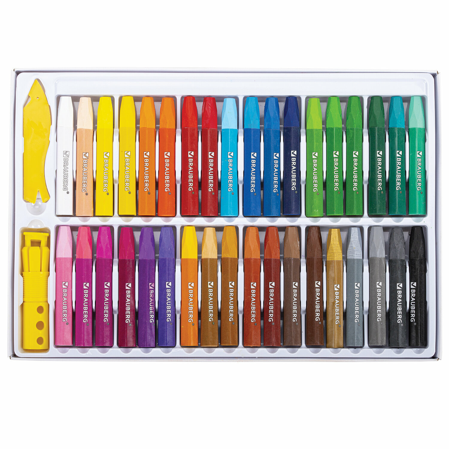 Купить Восковые мелки, пастель масляная для рисования детям, набор 36 цветов с точилкой, держателем и стеком, Brauberg Premium
