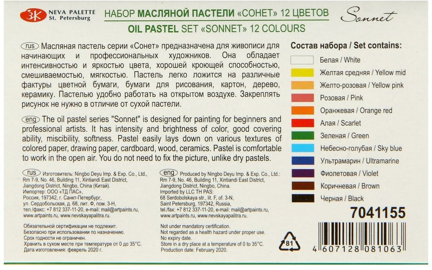 Пастель масляная ЗХК "Сонет", 12 цветов, 9/59 мм, круглая, 7041155 интересное: